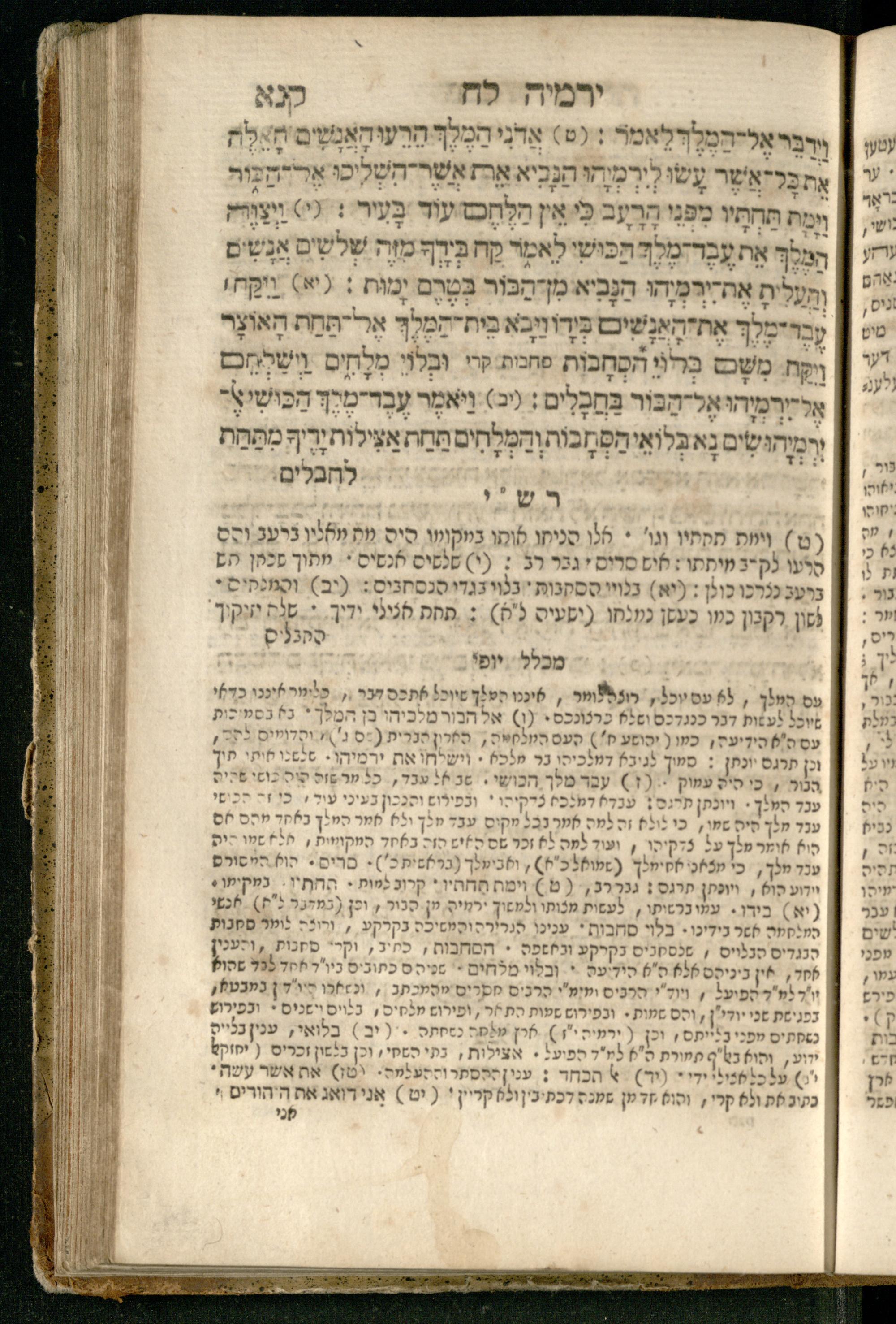 Sefer Yirmeyah / meturgam Ashkenazit u-mevoʾar me-rosh ha-sefer ʿad parashah 11, me-et ... Daṿid Oṭṭenzoser, u-mi-parashah 11 ʿad sof ha-sefer, me-et ... Shalom ha-Kohen n.r.v, gam hitsagti bo perush ... Rashi z.ts.l. ... Ṿe-nilṿeh elaṿ perush Mikhlal yofi ...ספר ירמיה / מתורגם אשכנזית ומבואר מראש הספר עד פרשה י״א, מאת ... דוד אטטענזאסער, ומפרשה י״א עד סוף הספר, מאת ... שלום הכהן נר״ו, גם הצגתי בו פירוש ... רש״י זצ״ל ... ונלוה אליו פירוש מכלל יופי ...