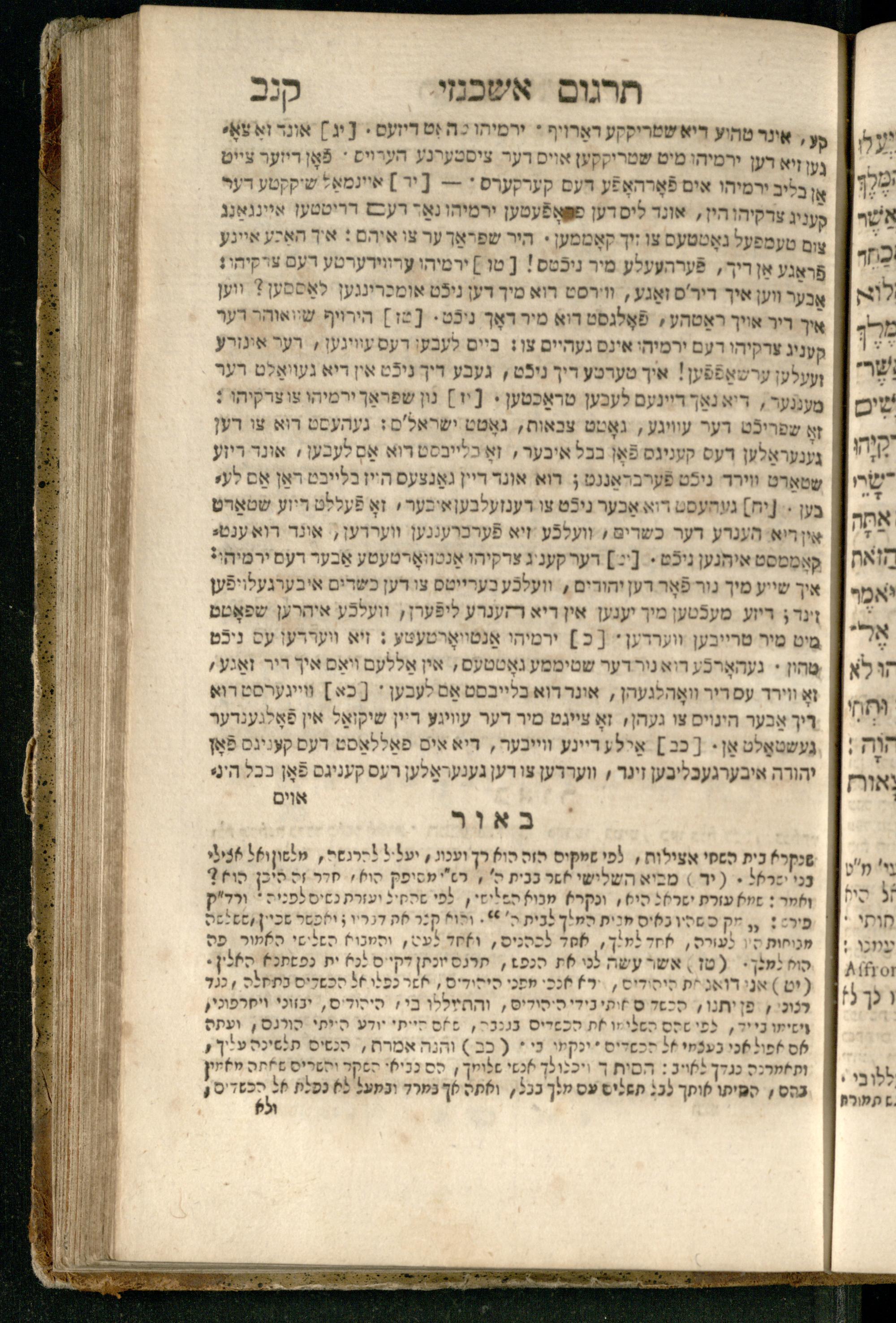 Sefer Yirmeyah / meturgam Ashkenazit u-mevoʾar me-rosh ha-sefer ʿad parashah 11, me-et ... Daṿid Oṭṭenzoser, u-mi-parashah 11 ʿad sof ha-sefer, me-et ... Shalom ha-Kohen n.r.v, gam hitsagti bo perush ... Rashi z.ts.l. ... Ṿe-nilṿeh elaṿ perush Mikhlal yofi ...ספר ירמיה / מתורגם אשכנזית ומבואר מראש הספר עד פרשה י״א, מאת ... דוד אטטענזאסער, ומפרשה י״א עד סוף הספר, מאת ... שלום הכהן נר״ו, גם הצגתי בו פירוש ... רש״י זצ״ל ... ונלוה אליו פירוש מכלל יופי ...