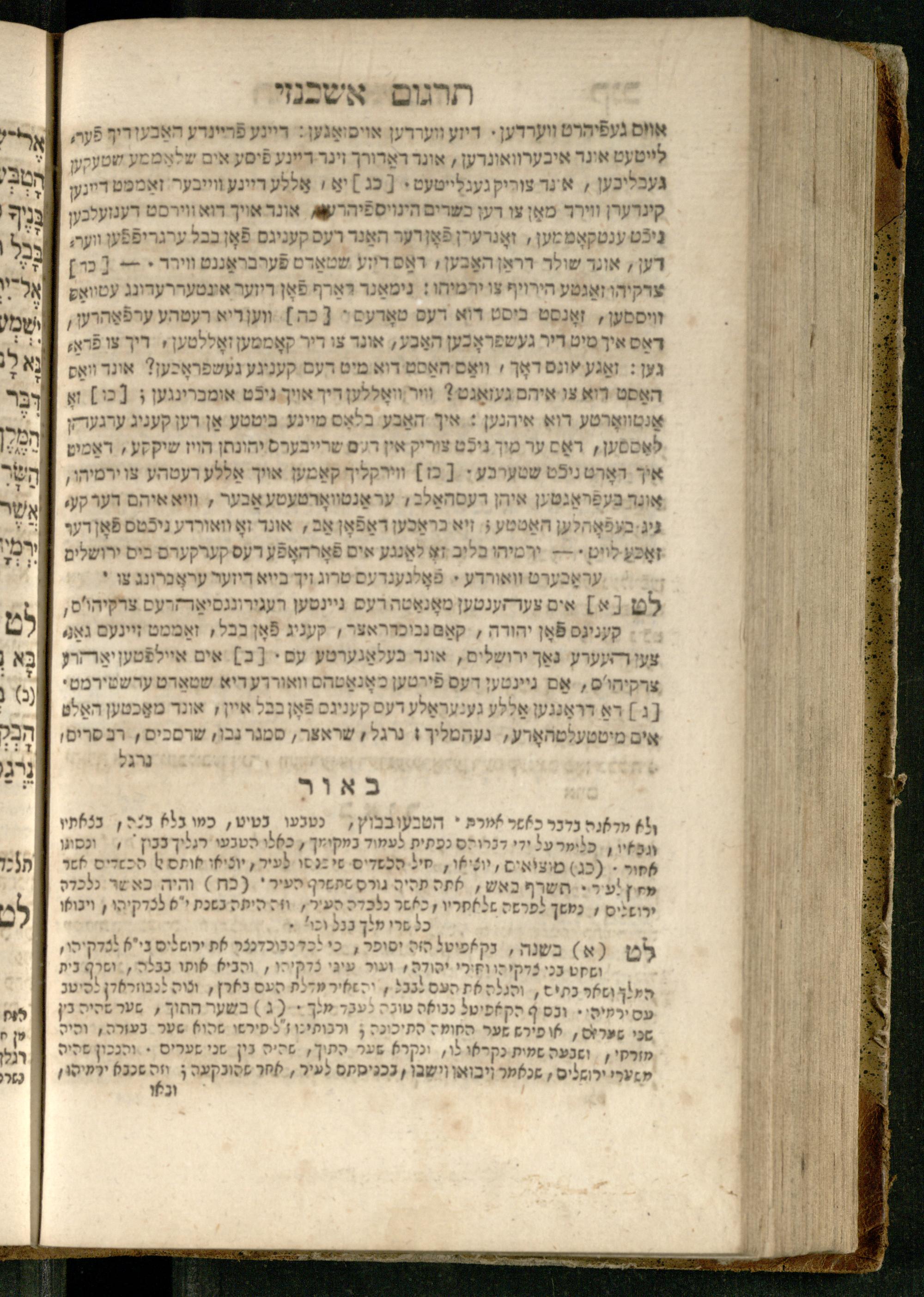 Sefer Yirmeyah / meturgam Ashkenazit u-mevoʾar me-rosh ha-sefer ʿad parashah 11, me-et ... Daṿid Oṭṭenzoser, u-mi-parashah 11 ʿad sof ha-sefer, me-et ... Shalom ha-Kohen n.r.v, gam hitsagti bo perush ... Rashi z.ts.l. ... Ṿe-nilṿeh elaṿ perush Mikhlal yofi ...ספר ירמיה / מתורגם אשכנזית ומבואר מראש הספר עד פרשה י״א, מאת ... דוד אטטענזאסער, ומפרשה י״א עד סוף הספר, מאת ... שלום הכהן נר״ו, גם הצגתי בו פירוש ... רש״י זצ״ל ... ונלוה אליו פירוש מכלל יופי ...