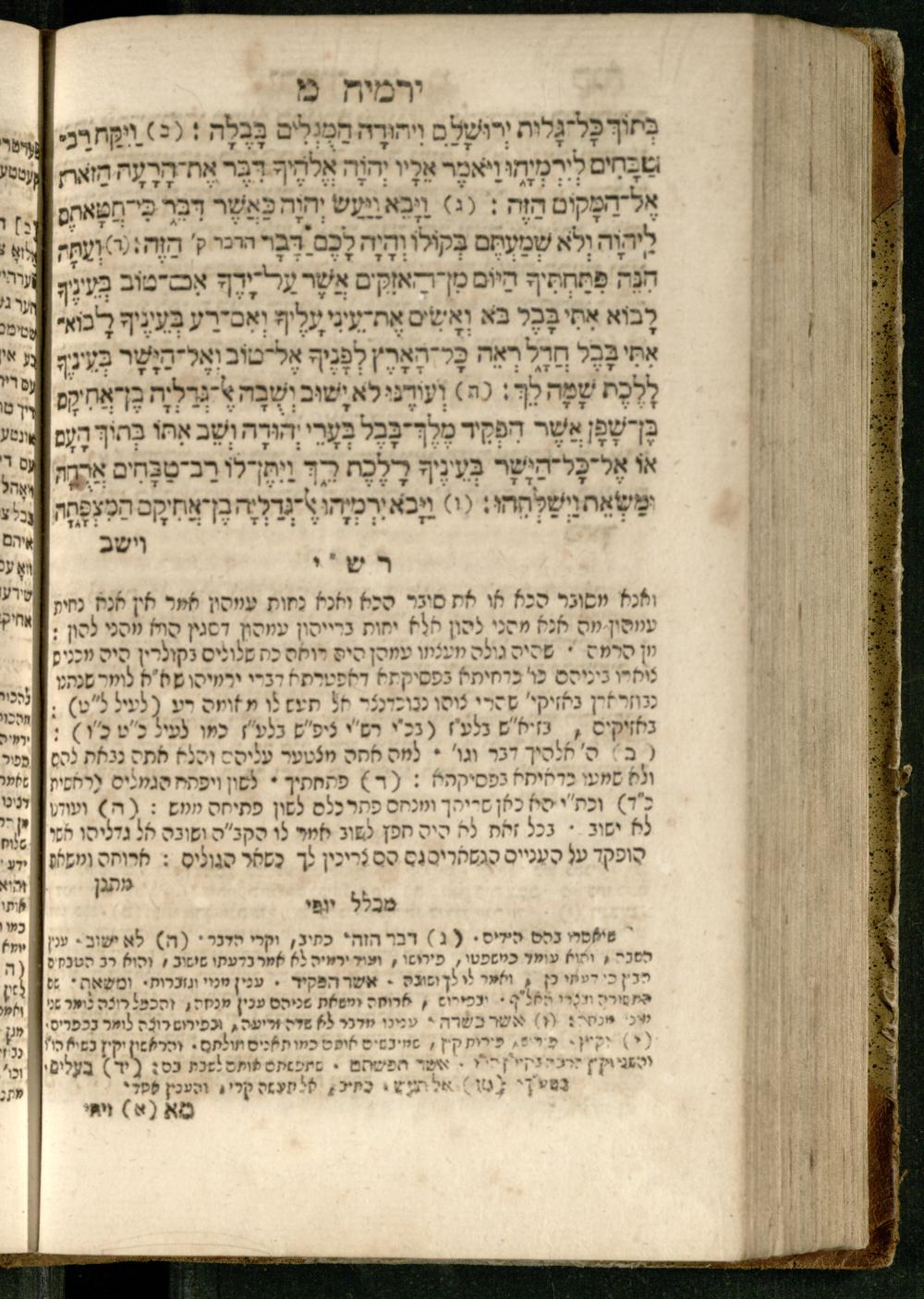 Sefer Yirmeyah / meturgam Ashkenazit u-mevoʾar me-rosh ha-sefer ʿad parashah 11, me-et ... Daṿid Oṭṭenzoser, u-mi-parashah 11 ʿad sof ha-sefer, me-et ... Shalom ha-Kohen n.r.v, gam hitsagti bo perush ... Rashi z.ts.l. ... Ṿe-nilṿeh elaṿ perush Mikhlal yofi ...ספר ירמיה / מתורגם אשכנזית ומבואר מראש הספר עד פרשה י״א, מאת ... דוד אטטענזאסער, ומפרשה י״א עד סוף הספר, מאת ... שלום הכהן נר״ו, גם הצגתי בו פירוש ... רש״י זצ״ל ... ונלוה אליו פירוש מכלל יופי ...