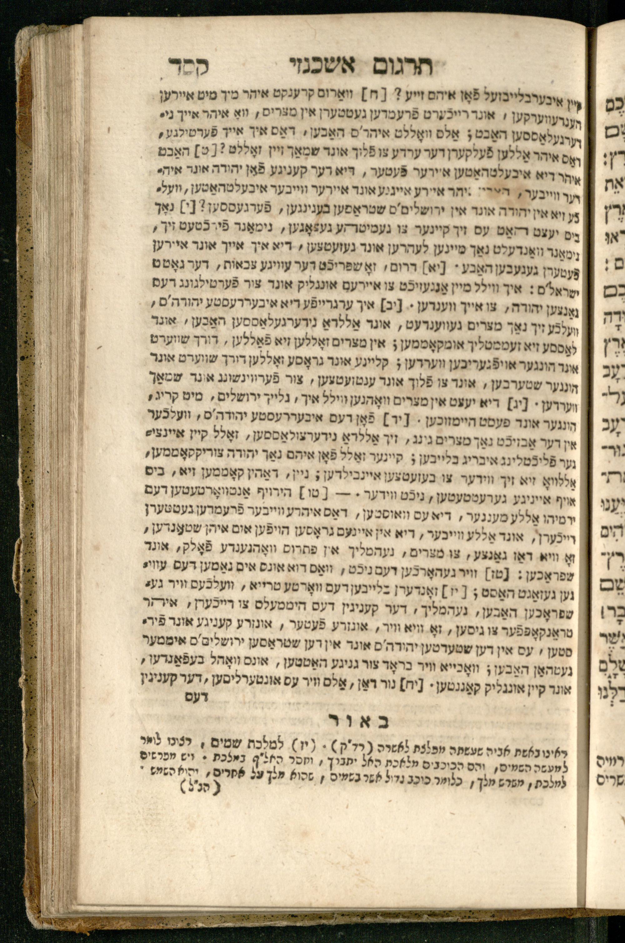 Sefer Yirmeyah / meturgam Ashkenazit u-mevoʾar me-rosh ha-sefer ʿad parashah 11, me-et ... Daṿid Oṭṭenzoser, u-mi-parashah 11 ʿad sof ha-sefer, me-et ... Shalom ha-Kohen n.r.v, gam hitsagti bo perush ... Rashi z.ts.l. ... Ṿe-nilṿeh elaṿ perush Mikhlal yofi ...ספר ירמיה / מתורגם אשכנזית ומבואר מראש הספר עד פרשה י״א, מאת ... דוד אטטענזאסער, ומפרשה י״א עד סוף הספר, מאת ... שלום הכהן נר״ו, גם הצגתי בו פירוש ... רש״י זצ״ל ... ונלוה אליו פירוש מכלל יופי ...