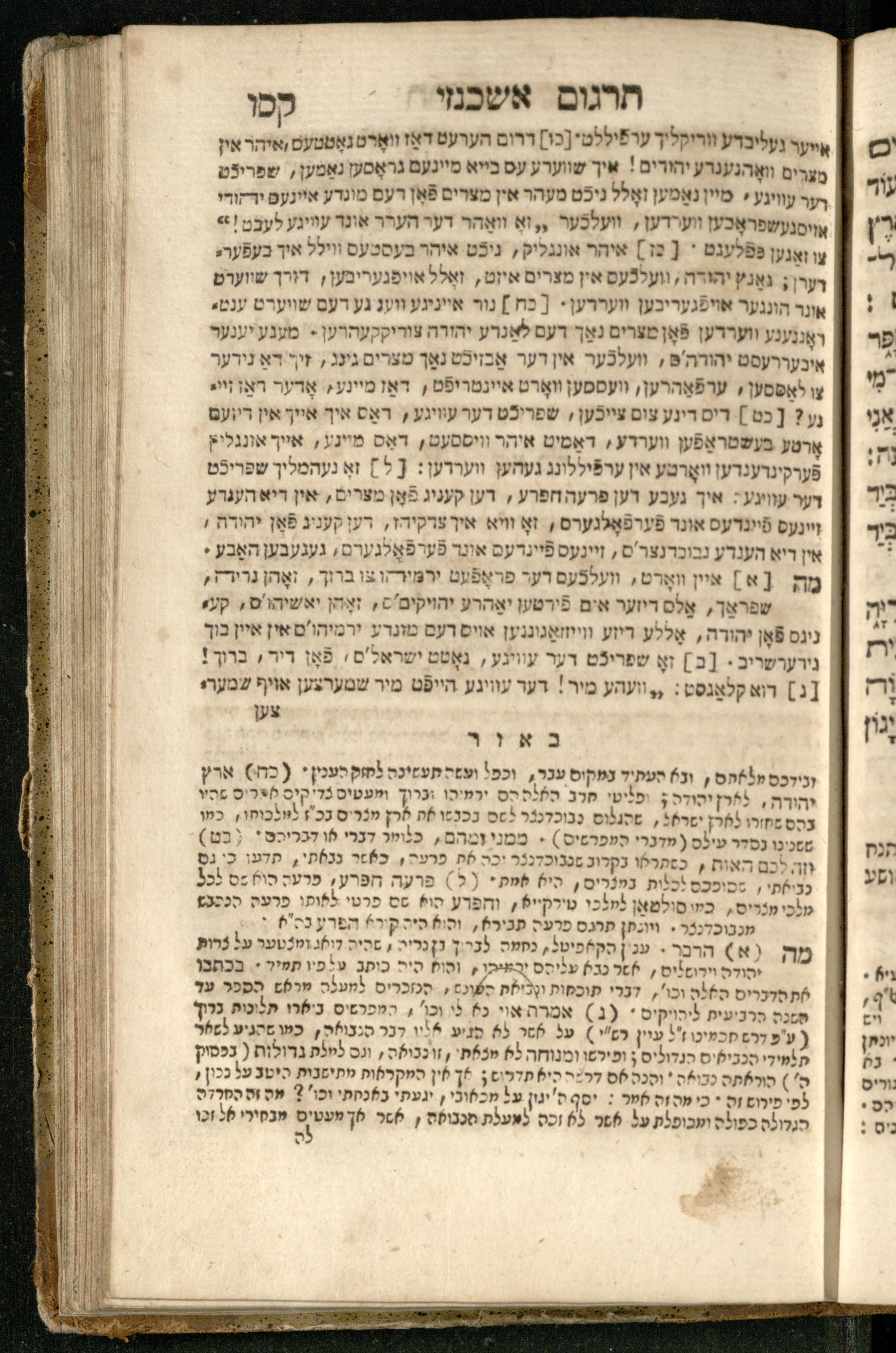 Sefer Yirmeyah / meturgam Ashkenazit u-mevoʾar me-rosh ha-sefer ʿad parashah 11, me-et ... Daṿid Oṭṭenzoser, u-mi-parashah 11 ʿad sof ha-sefer, me-et ... Shalom ha-Kohen n.r.v, gam hitsagti bo perush ... Rashi z.ts.l. ... Ṿe-nilṿeh elaṿ perush Mikhlal yofi ...ספר ירמיה / מתורגם אשכנזית ומבואר מראש הספר עד פרשה י״א, מאת ... דוד אטטענזאסער, ומפרשה י״א עד סוף הספר, מאת ... שלום הכהן נר״ו, גם הצגתי בו פירוש ... רש״י זצ״ל ... ונלוה אליו פירוש מכלל יופי ...