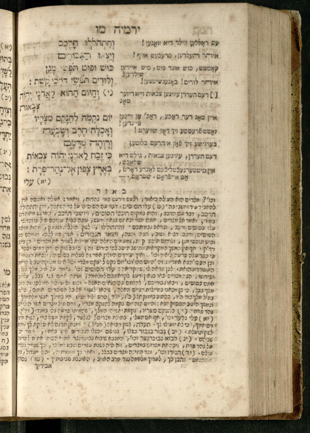 Sefer Yirmeyah / meturgam Ashkenazit u-mevoʾar me-rosh ha-sefer ʿad parashah 11, me-et ... Daṿid Oṭṭenzoser, u-mi-parashah 11 ʿad sof ha-sefer, me-et ... Shalom ha-Kohen n.r.v, gam hitsagti bo perush ... Rashi z.ts.l. ... Ṿe-nilṿeh elaṿ perush Mikhlal yofi ...ספר ירמיה / מתורגם אשכנזית ומבואר מראש הספר עד פרשה י״א, מאת ... דוד אטטענזאסער, ומפרשה י״א עד סוף הספר, מאת ... שלום הכהן נר״ו, גם הצגתי בו פירוש ... רש״י זצ״ל ... ונלוה אליו פירוש מכלל יופי ...