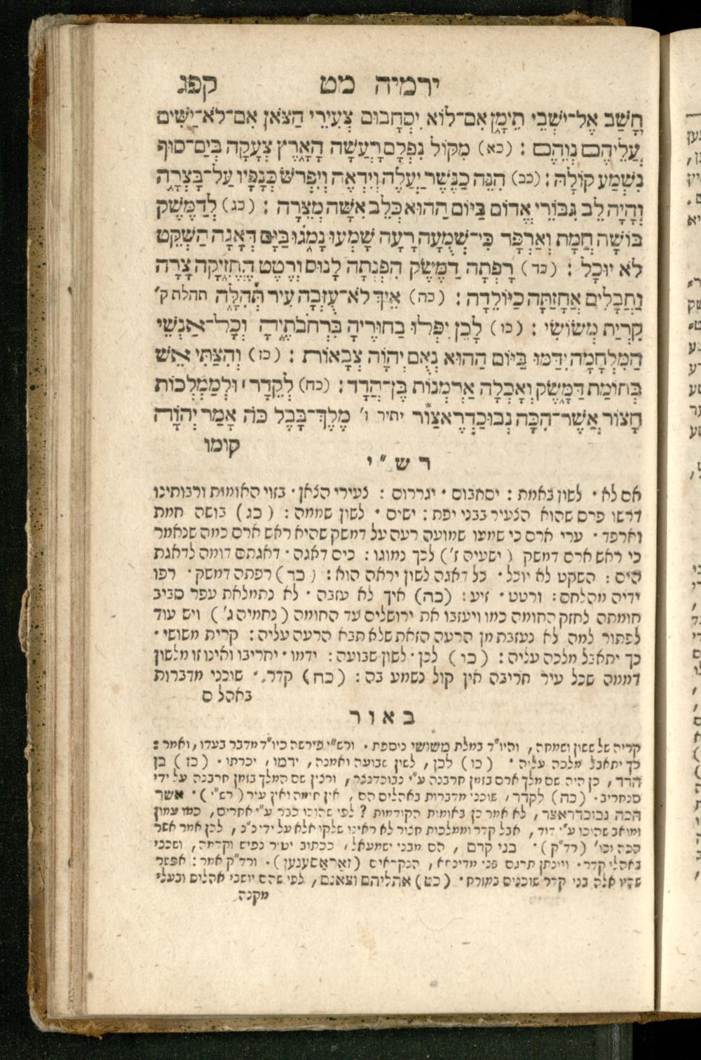 Sefer Yirmeyah / meturgam Ashkenazit u-mevoʾar me-rosh ha-sefer ʿad parashah 11, me-et ... Daṿid Oṭṭenzoser, u-mi-parashah 11 ʿad sof ha-sefer, me-et ... Shalom ha-Kohen n.r.v, gam hitsagti bo perush ... Rashi z.ts.l. ... Ṿe-nilṿeh elaṿ perush Mikhlal yofi ...ספר ירמיה / מתורגם אשכנזית ומבואר מראש הספר עד פרשה י״א, מאת ... דוד אטטענזאסער, ומפרשה י״א עד סוף הספר, מאת ... שלום הכהן נר״ו, גם הצגתי בו פירוש ... רש״י זצ״ל ... ונלוה אליו פירוש מכלל יופי ...