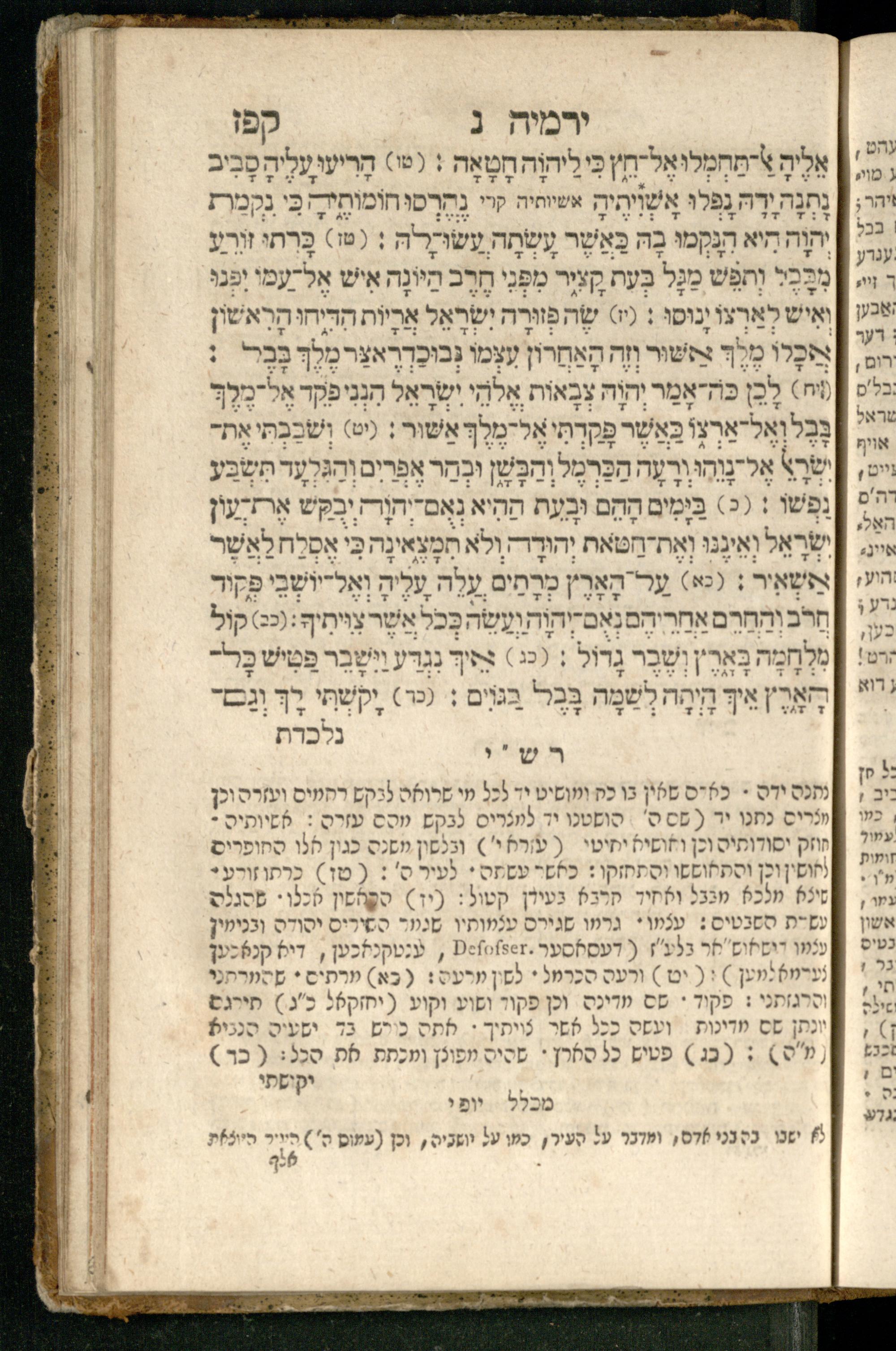 Sefer Yirmeyah / meturgam Ashkenazit u-mevoʾar me-rosh ha-sefer ʿad parashah 11, me-et ... Daṿid Oṭṭenzoser, u-mi-parashah 11 ʿad sof ha-sefer, me-et ... Shalom ha-Kohen n.r.v, gam hitsagti bo perush ... Rashi z.ts.l. ... Ṿe-nilṿeh elaṿ perush Mikhlal yofi ...ספר ירמיה / מתורגם אשכנזית ומבואר מראש הספר עד פרשה י״א, מאת ... דוד אטטענזאסער, ומפרשה י״א עד סוף הספר, מאת ... שלום הכהן נר״ו, גם הצגתי בו פירוש ... רש״י זצ״ל ... ונלוה אליו פירוש מכלל יופי ...
