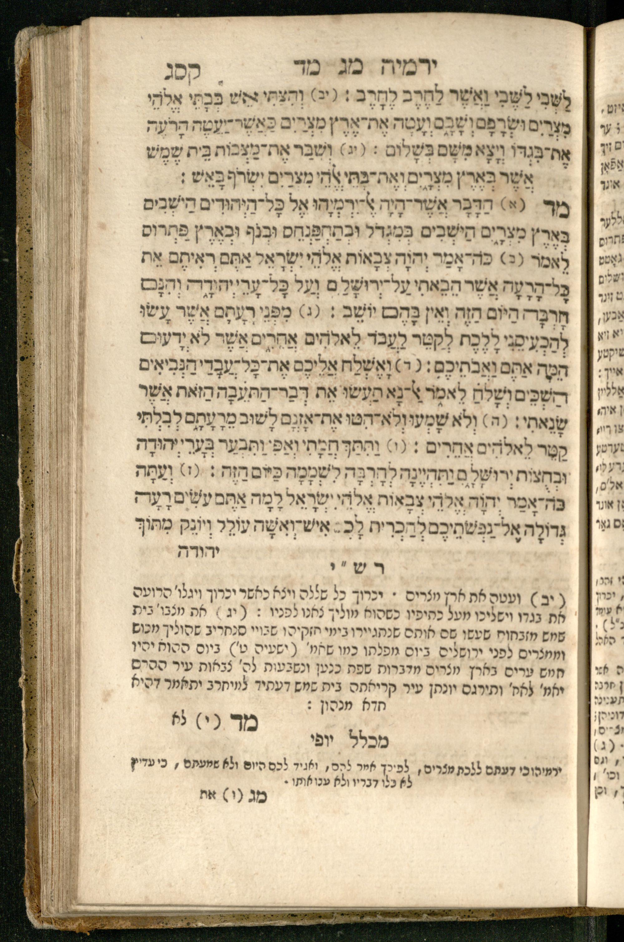 Sefer Yirmeyah / meturgam Ashkenazit u-mevoʾar me-rosh ha-sefer ʿad parashah 11, me-et ... Daṿid Oṭṭenzoser, u-mi-parashah 11 ʿad sof ha-sefer, me-et ... Shalom ha-Kohen n.r.v, gam hitsagti bo perush ... Rashi z.ts.l. ... Ṿe-nilṿeh elaṿ perush Mikhlal yofi ...ספר ירמיה / מתורגם אשכנזית ומבואר מראש הספר עד פרשה י״א, מאת ... דוד אטטענזאסער, ומפרשה י״א עד סוף הספר, מאת ... שלום הכהן נר״ו, גם הצגתי בו פירוש ... רש״י זצ״ל ... ונלוה אליו פירוש מכלל יופי ...