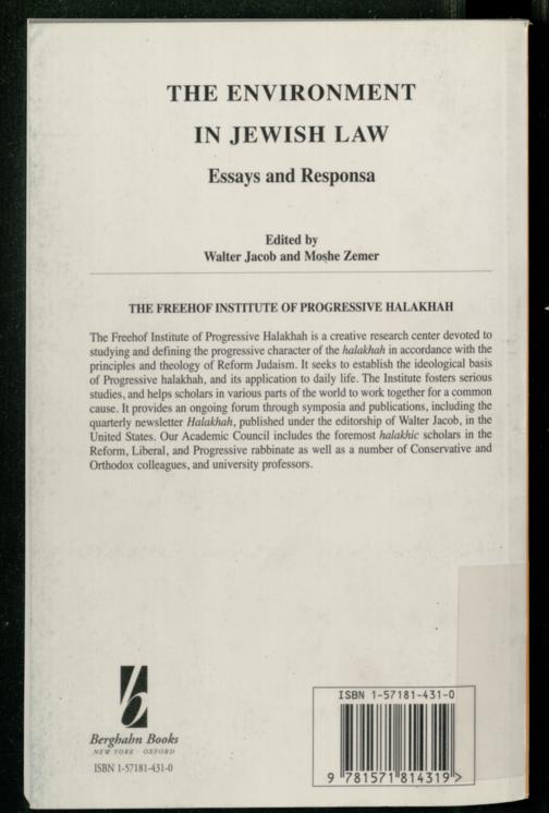 Environment in Jewish law : essays and responsa / edited by Walter Jacob and Moshe Zemer