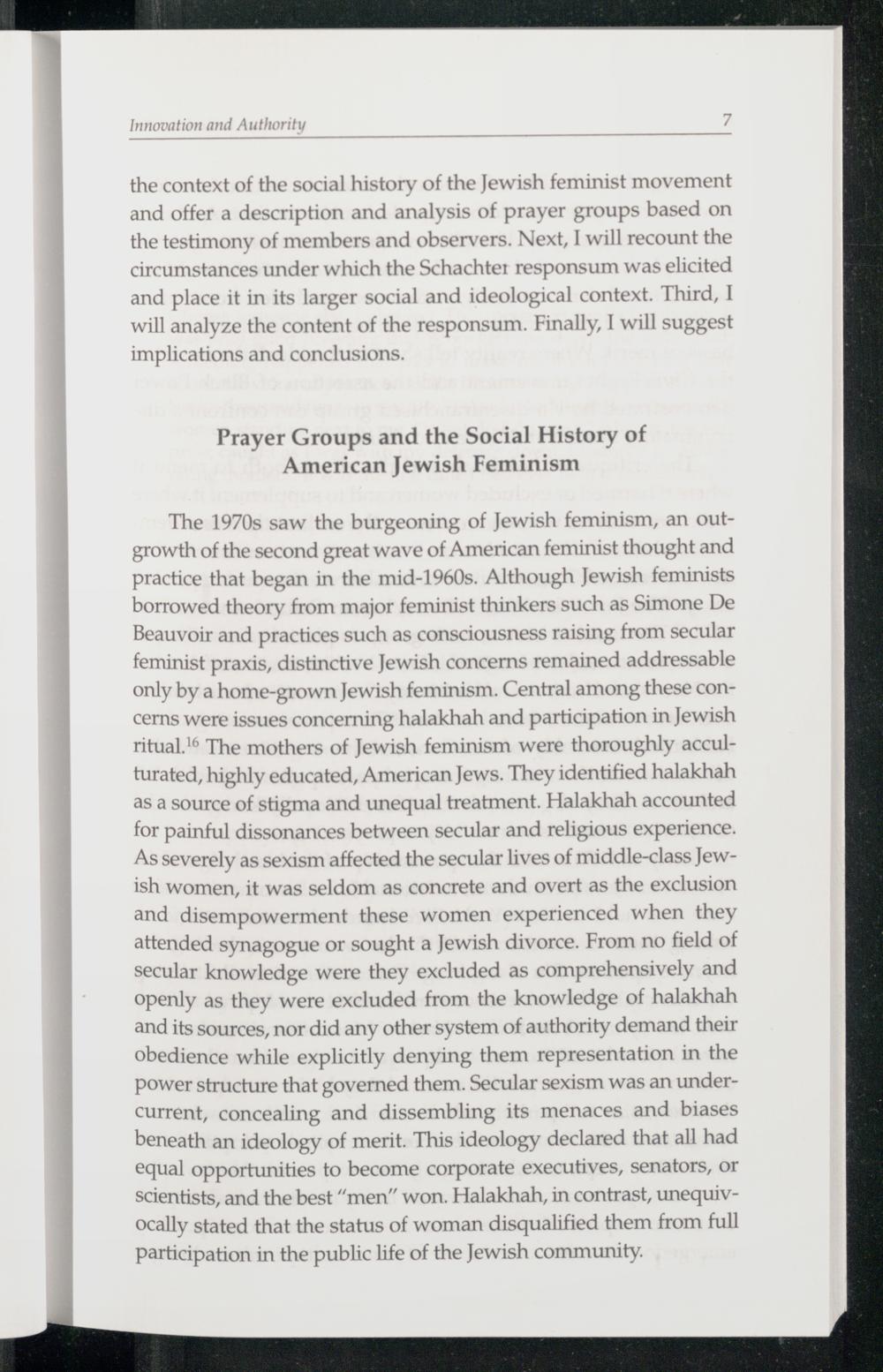 Chapter 1. Innovation and Authority. A Feminist Reading of the "Women's Minyan" Responsum