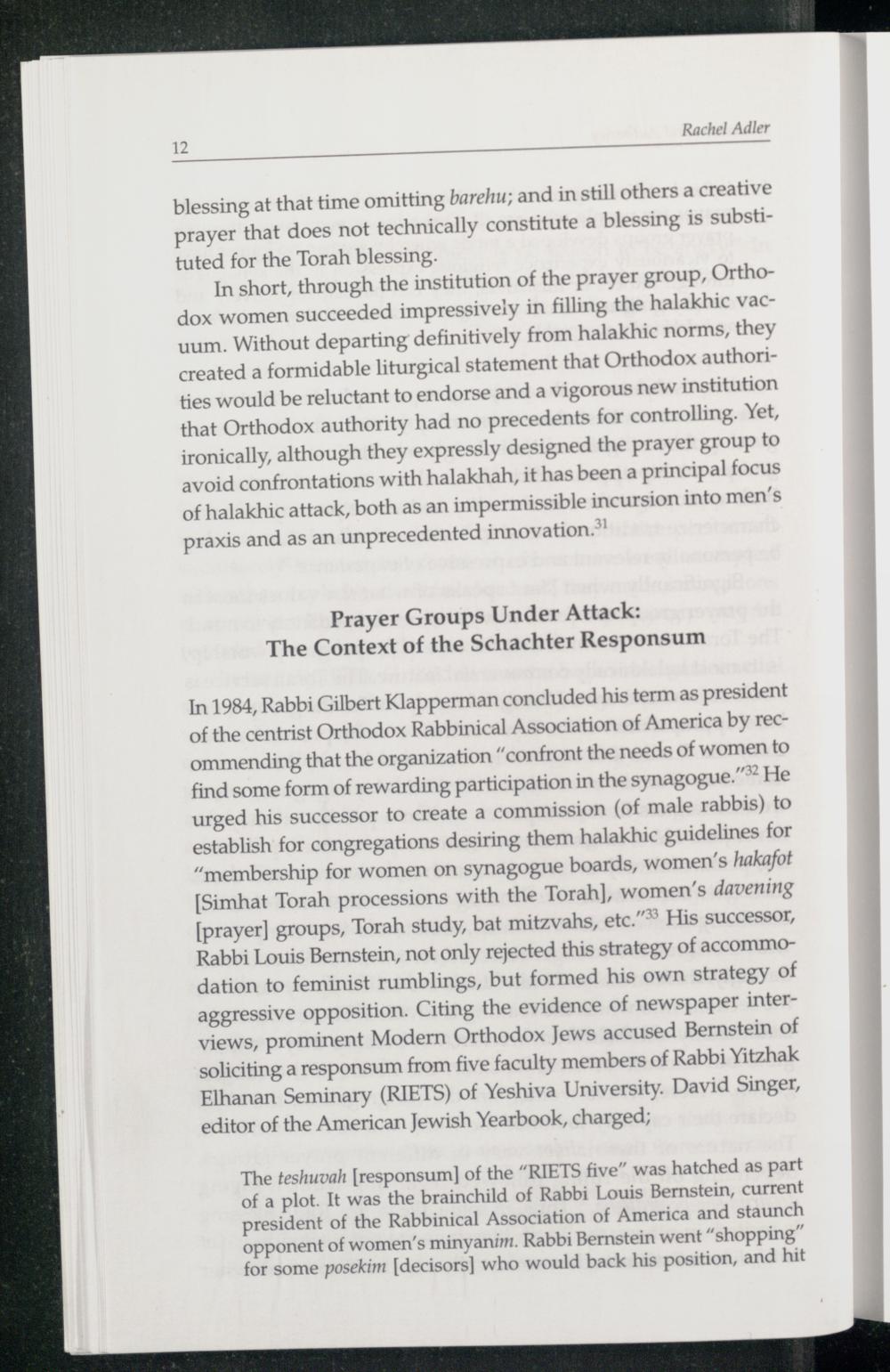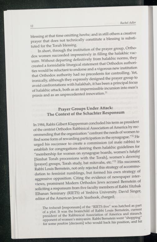 Chapter 1. Innovation and Authority. A Feminist Reading of the "Women's Minyan" Responsum