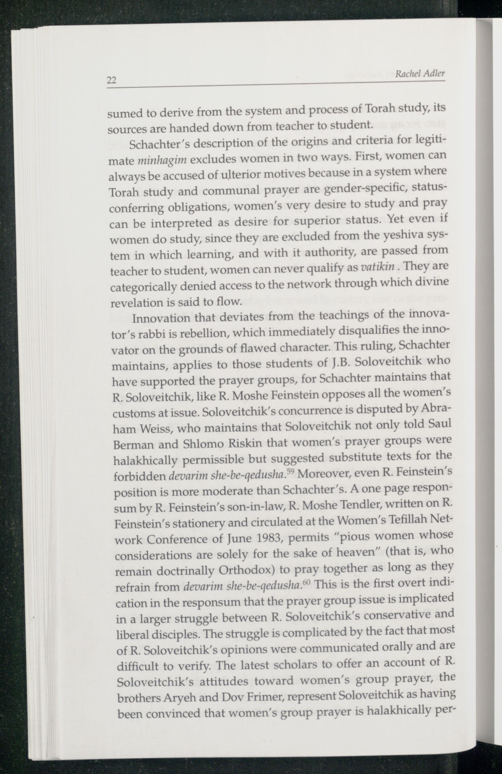 Chapter 1. Innovation and Authority. A Feminist Reading of the "Women's Minyan" Responsum