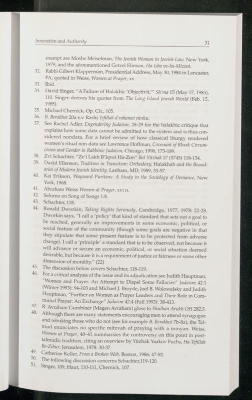 Chapter 1. Innovation and Authority. A Feminist Reading of the "Women's Minyan" Responsum