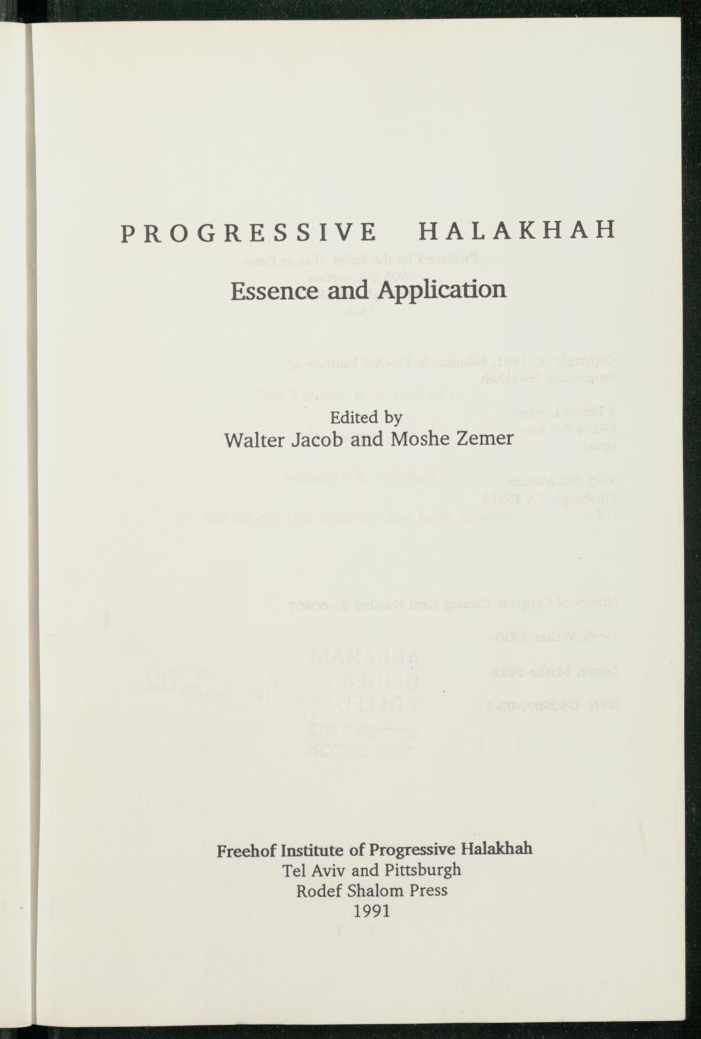 Progressive halakhah : essence and application / edited by Walter Jacob and Moshe Zemer