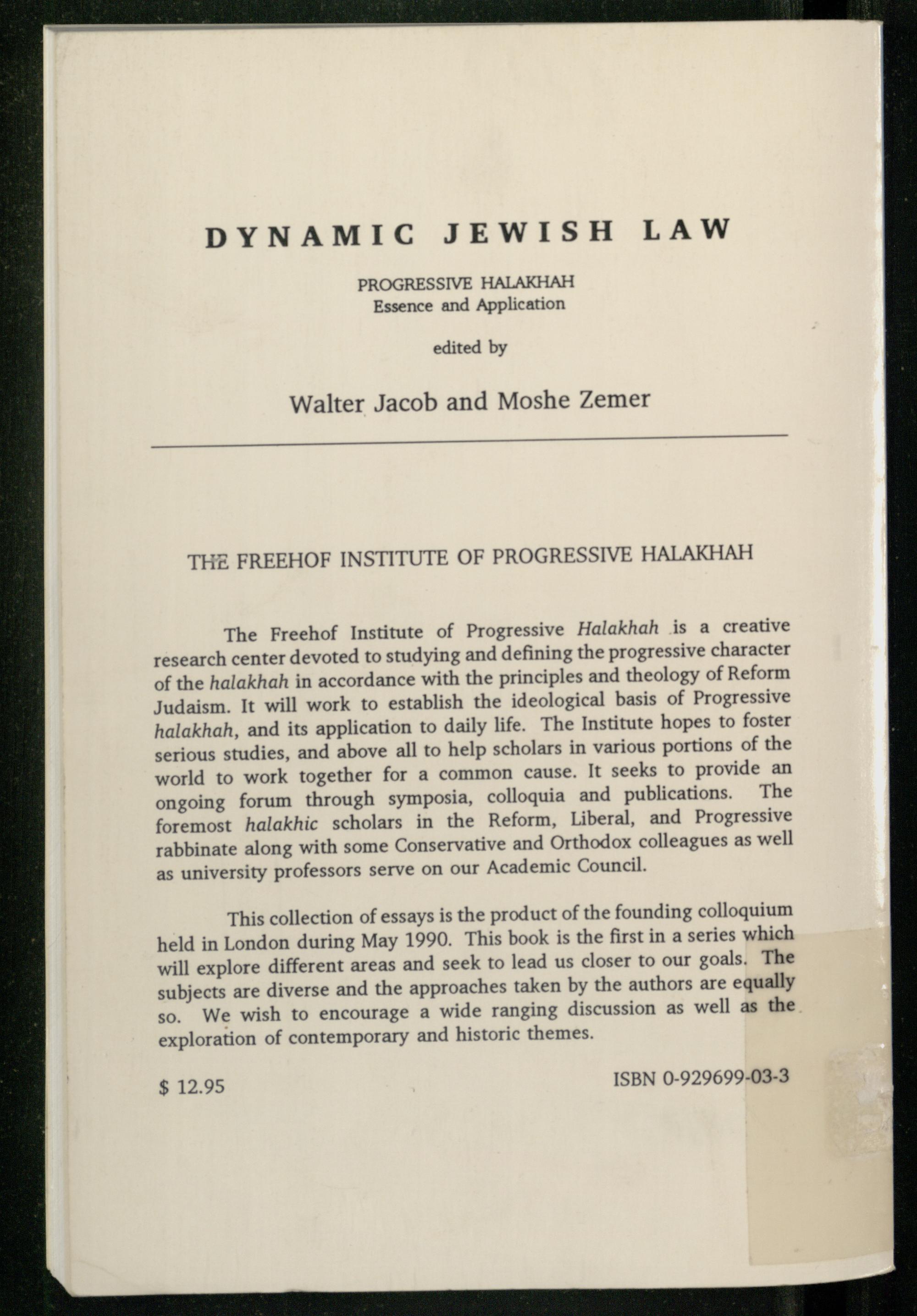 Progressive halakhah : essence and application / edited by Walter Jacob and Moshe Zemer