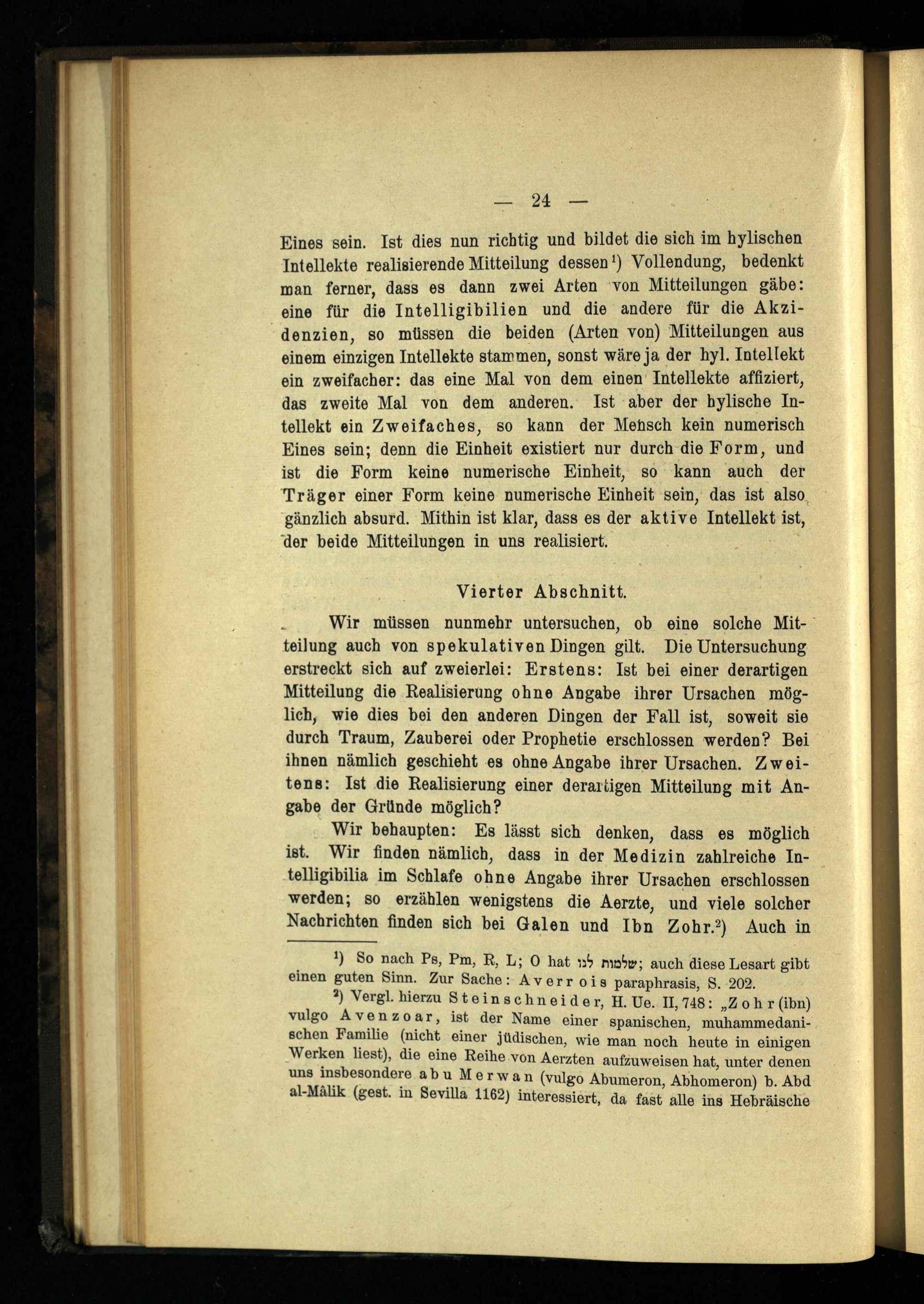 Vieter Abschnitt: Ueber die Frage, ob sich eine solche Mitteilung in bezug auf spekulative...