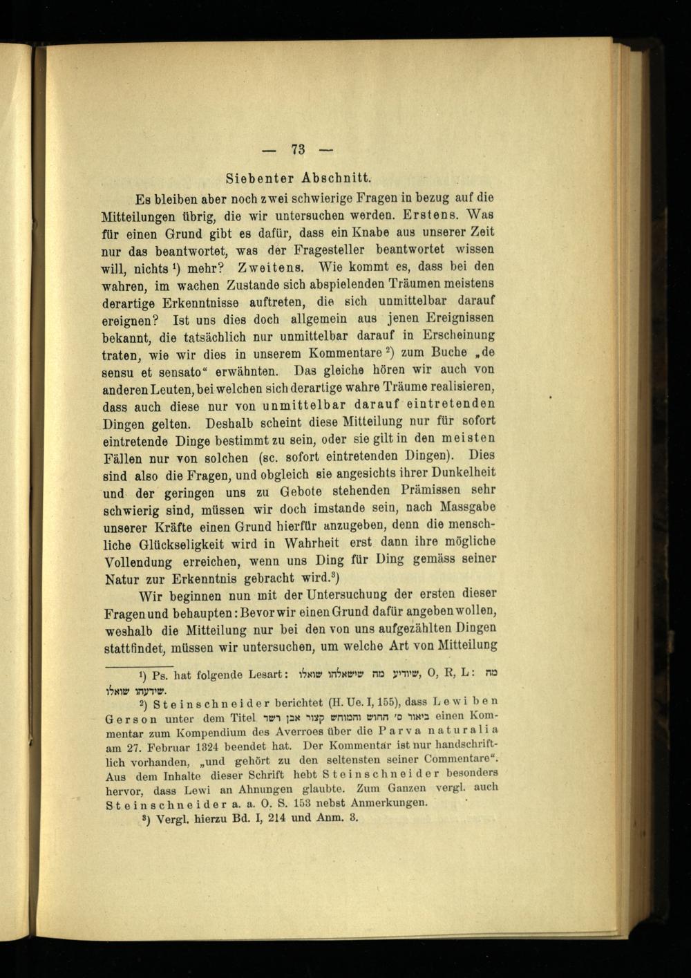 Siebenter Abschnitt: Untersuchung schwieriger Fragen in bezug auf Traum und Zaub...