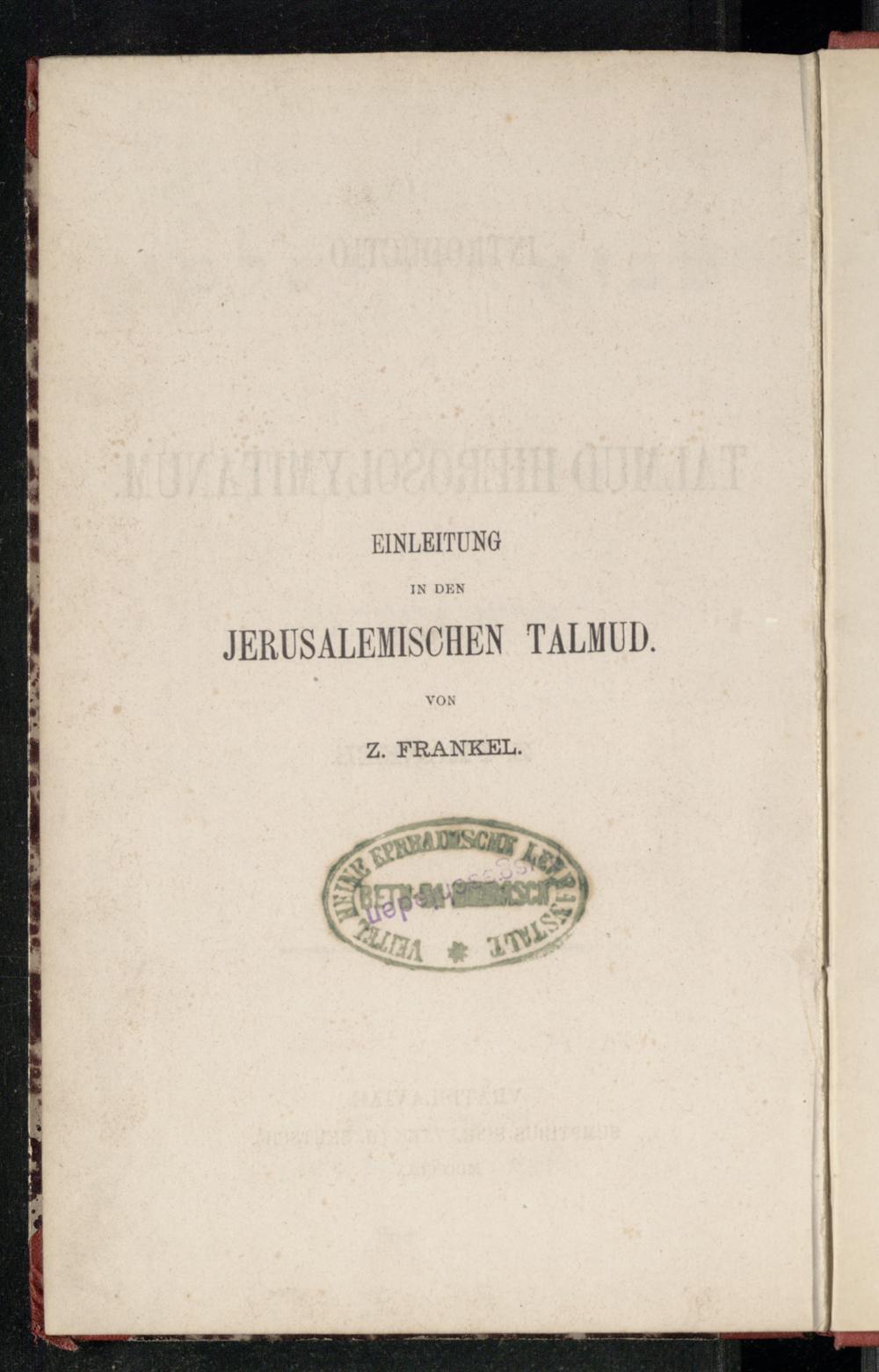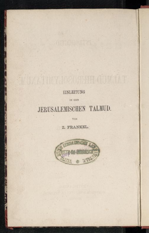 Mevoʾ ha-Yerushalmi / me-et Zekharyah Franḳelמבוא הירושלמי / מאת זכריה פראנקעל