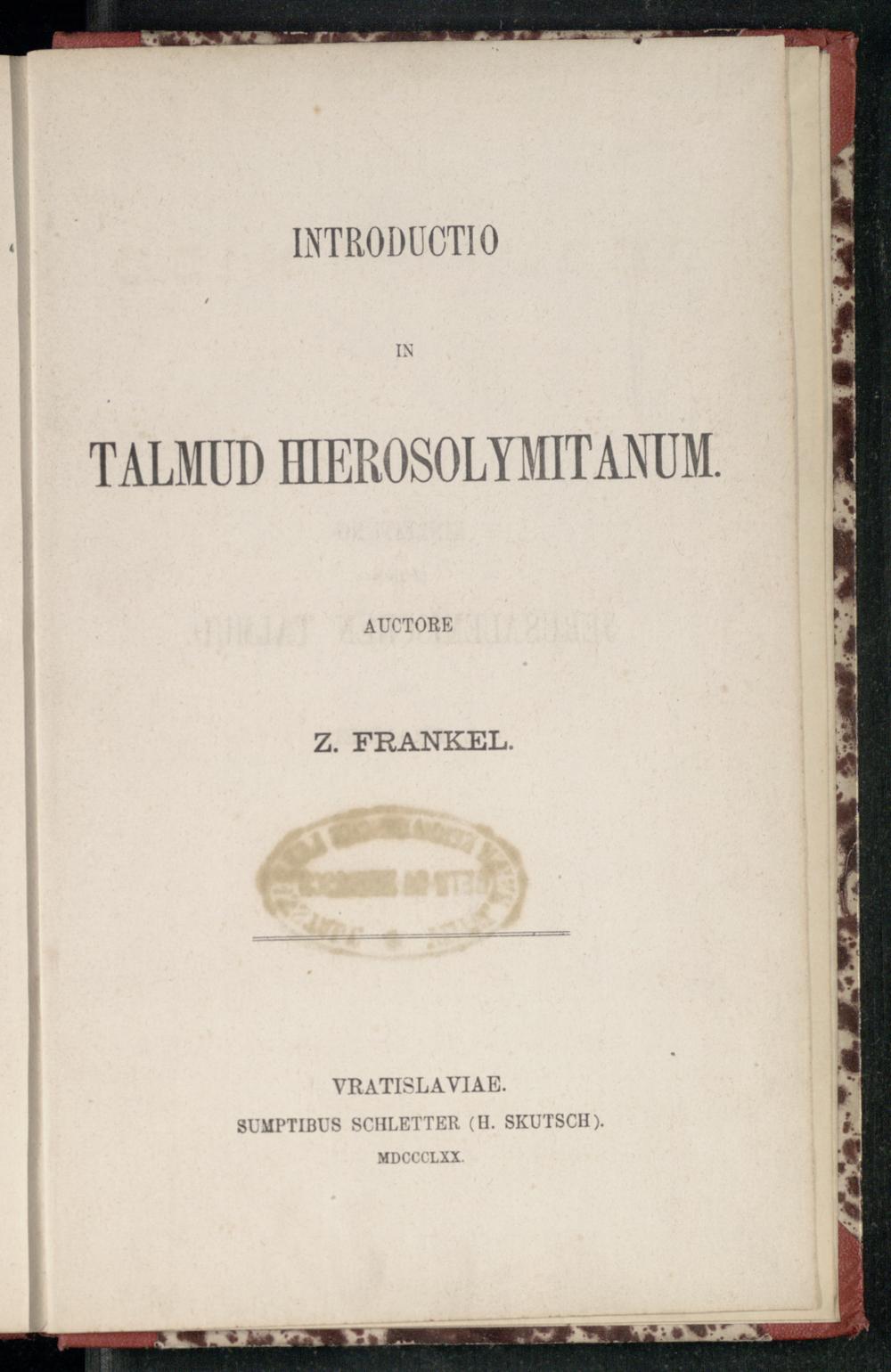 Mevoʾ ha-Yerushalmi / me-et Zekharyah Franḳelמבוא הירושלמי / מאת זכריה פראנקעל