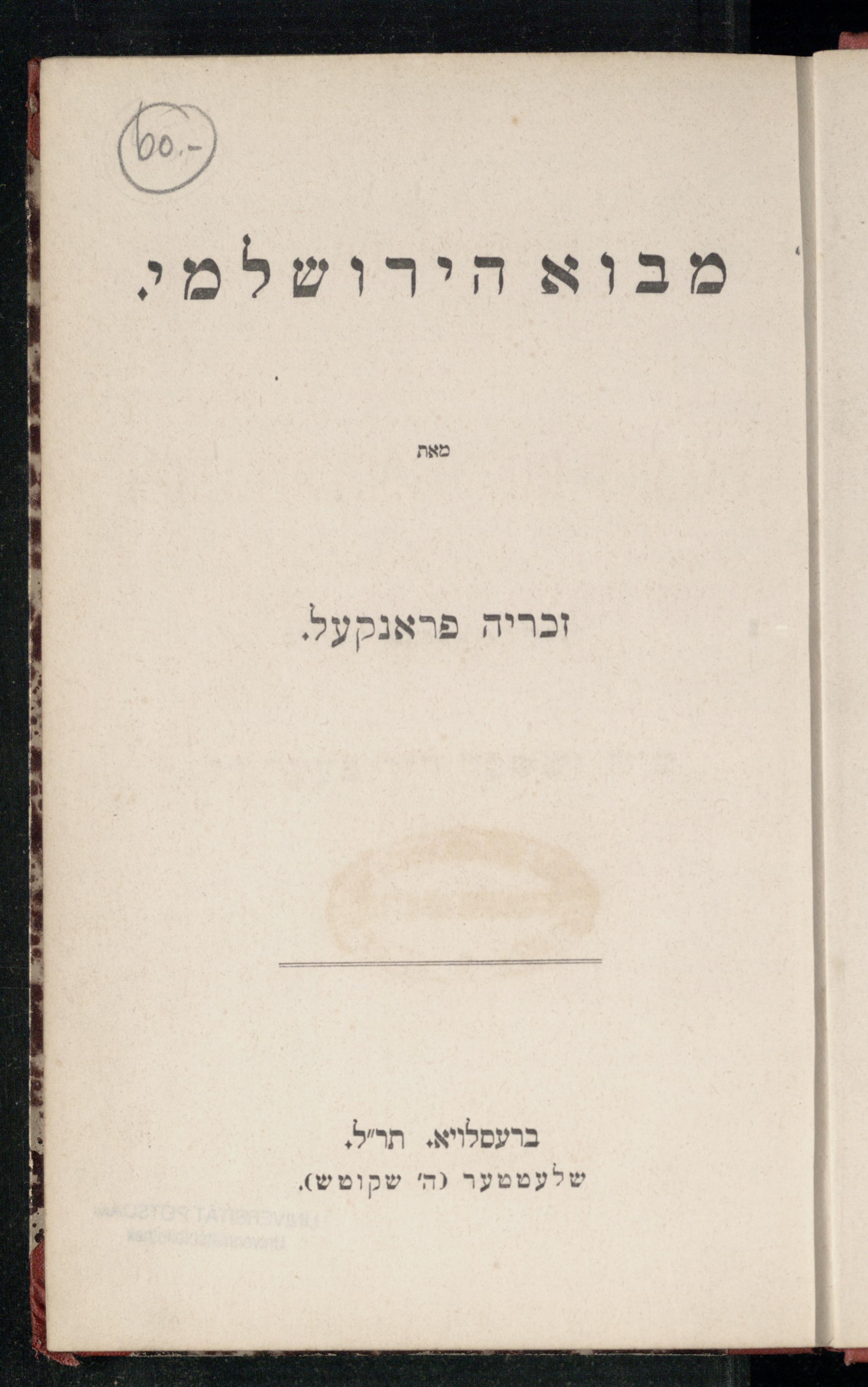 Mevoʾ ha-Yerushalmi / me-et Zekharyah Franḳelמבוא הירושלמי / מאת זכריה פראנקעל