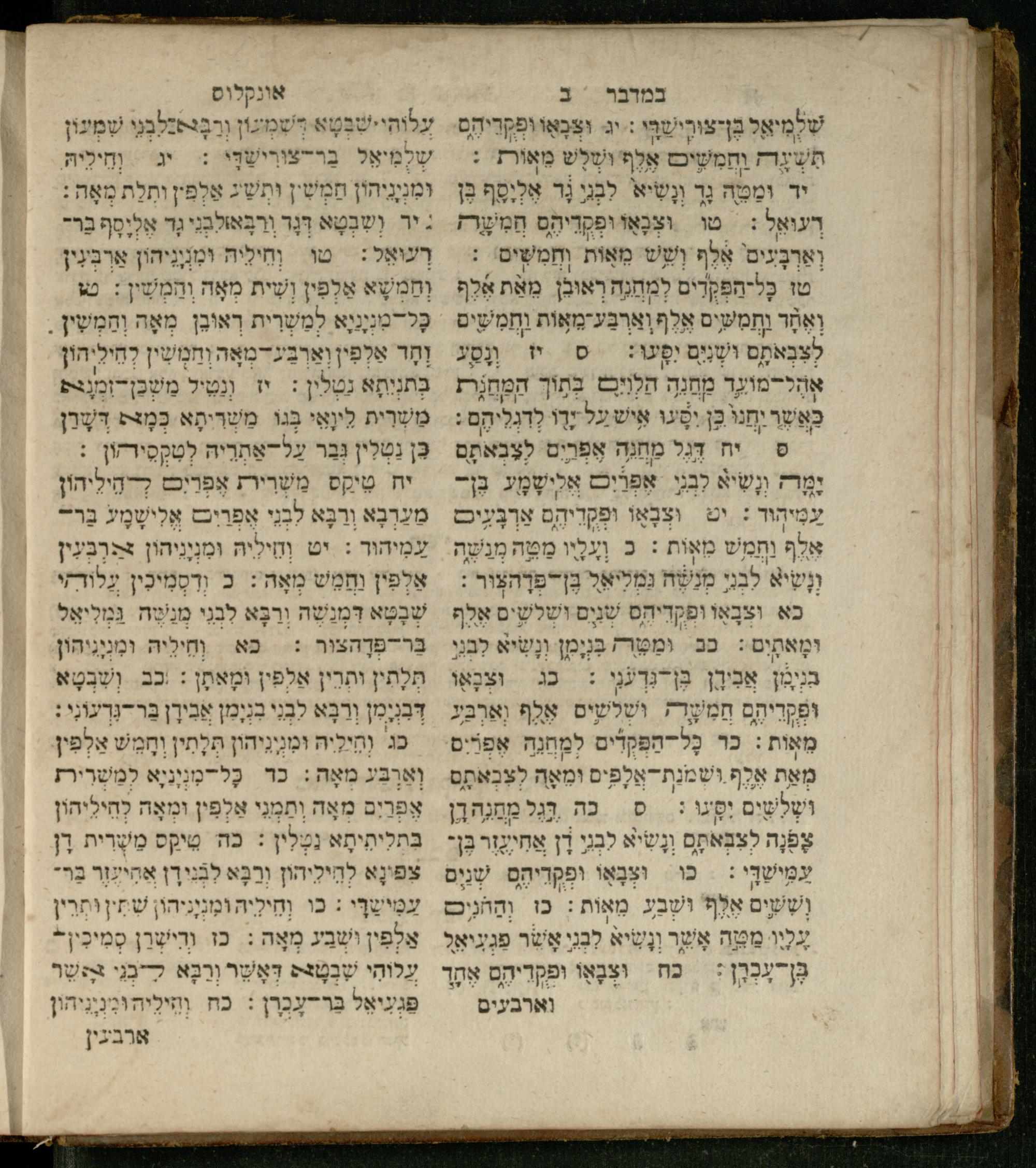 Sefer Ba-midbar : ʿim 3 targumim ... pe. Rashi, u-ferush Rashbam u-ferush Mikhlal yofi min R. Shelomoh ben Melekh u-ferush Beʾer reḥovot ʿal diḳduḳe Rashi ... ṿe-Sefer ha-Ḥinukh me-Rabenu Aharon ha-Leṿi ... / huva le-vet ha-defus ʿa.y. ha-torani ha-mufla mo.h.r.R. Pinḥas Eliyahu ben ha-torani ha-manhig mo.h.r.R. Ḥayim Kats u-veno ha-torani ha-mufla mo.h.r.R. Shemuʾel Kats mi-ḳ.ḳ. Ṿilnaספר במדבר : עם ג׳ תרגומים ... פירש״י, ופירוש רש״בם ופירוש מכלל יופי מן ר׳ שלמה בן מלך ופירוש באר רחובות על דקדוקי רש״י ... וספר החינוך מרבינו אהרן הלוי ... / הובא לבית הדפוס ע״י התורני המופלא מוה״רר פנחס אליהו בן התורני המנהיג מוה״רר חיים כ״ץ ובנו התורני המופלא מוה״רר שמואל כ״ץ מק״ק ווילנא