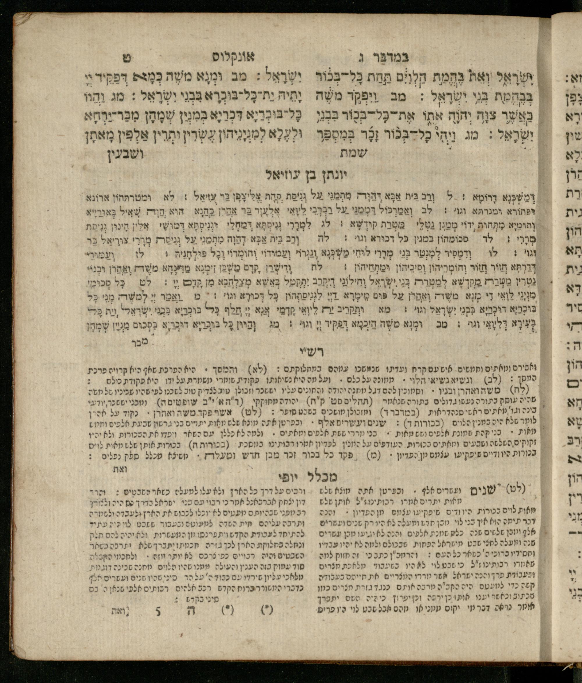 Sefer Ba-midbar : ʿim 3 targumim ... pe. Rashi, u-ferush Rashbam u-ferush Mikhlal yofi min R. Shelomoh ben Melekh u-ferush Beʾer reḥovot ʿal diḳduḳe Rashi ... ṿe-Sefer ha-Ḥinukh me-Rabenu Aharon ha-Leṿi ... / huva le-vet ha-defus ʿa.y. ha-torani ha-mufla mo.h.r.R. Pinḥas Eliyahu ben ha-torani ha-manhig mo.h.r.R. Ḥayim Kats u-veno ha-torani ha-mufla mo.h.r.R. Shemuʾel Kats mi-ḳ.ḳ. Ṿilnaספר במדבר : עם ג׳ תרגומים ... פירש״י, ופירוש רש״בם ופירוש מכלל יופי מן ר׳ שלמה בן מלך ופירוש באר רחובות על דקדוקי רש״י ... וספר החינוך מרבינו אהרן הלוי ... / הובא לבית הדפוס ע״י התורני המופלא מוה״רר פנחס אליהו בן התורני המנהיג מוה״רר חיים כ״ץ ובנו התורני המופלא מוה״רר שמואל כ״ץ מק״ק ווילנא