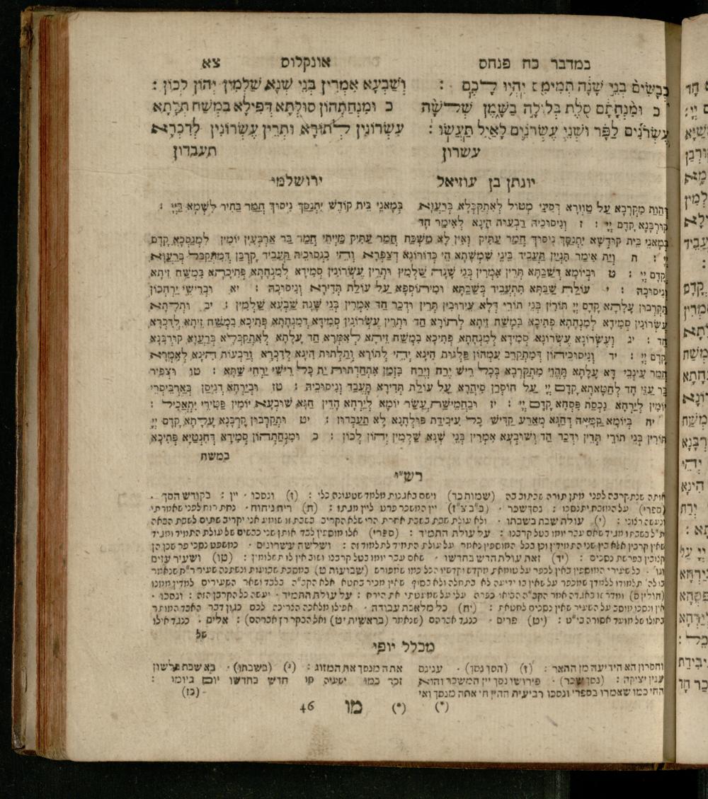 Sefer Ba-midbar : ʿim 3 targumim ... pe. Rashi, u-ferush Rashbam u-ferush Mikhlal yofi min R. Shelomoh ben Melekh u-ferush Beʾer reḥovot ʿal diḳduḳe Rashi ... ṿe-Sefer ha-Ḥinukh me-Rabenu Aharon ha-Leṿi ... / huva le-vet ha-defus ʿa.y. ha-torani ha-mufla mo.h.r.R. Pinḥas Eliyahu ben ha-torani ha-manhig mo.h.r.R. Ḥayim Kats u-veno ha-torani ha-mufla mo.h.r.R. Shemuʾel Kats mi-ḳ.ḳ. Ṿilnaספר במדבר : עם ג׳ תרגומים ... פירש״י, ופירוש רש״בם ופירוש מכלל יופי מן ר׳ שלמה בן מלך ופירוש באר רחובות על דקדוקי רש״י ... וספר החינוך מרבינו אהרן הלוי ... / הובא לבית הדפוס ע״י התורני המופלא מוה״רר פנחס אליהו בן התורני המנהיג מוה״רר חיים כ״ץ ובנו התורני המופלא מוה״רר שמואל כ״ץ מק״ק ווילנא
