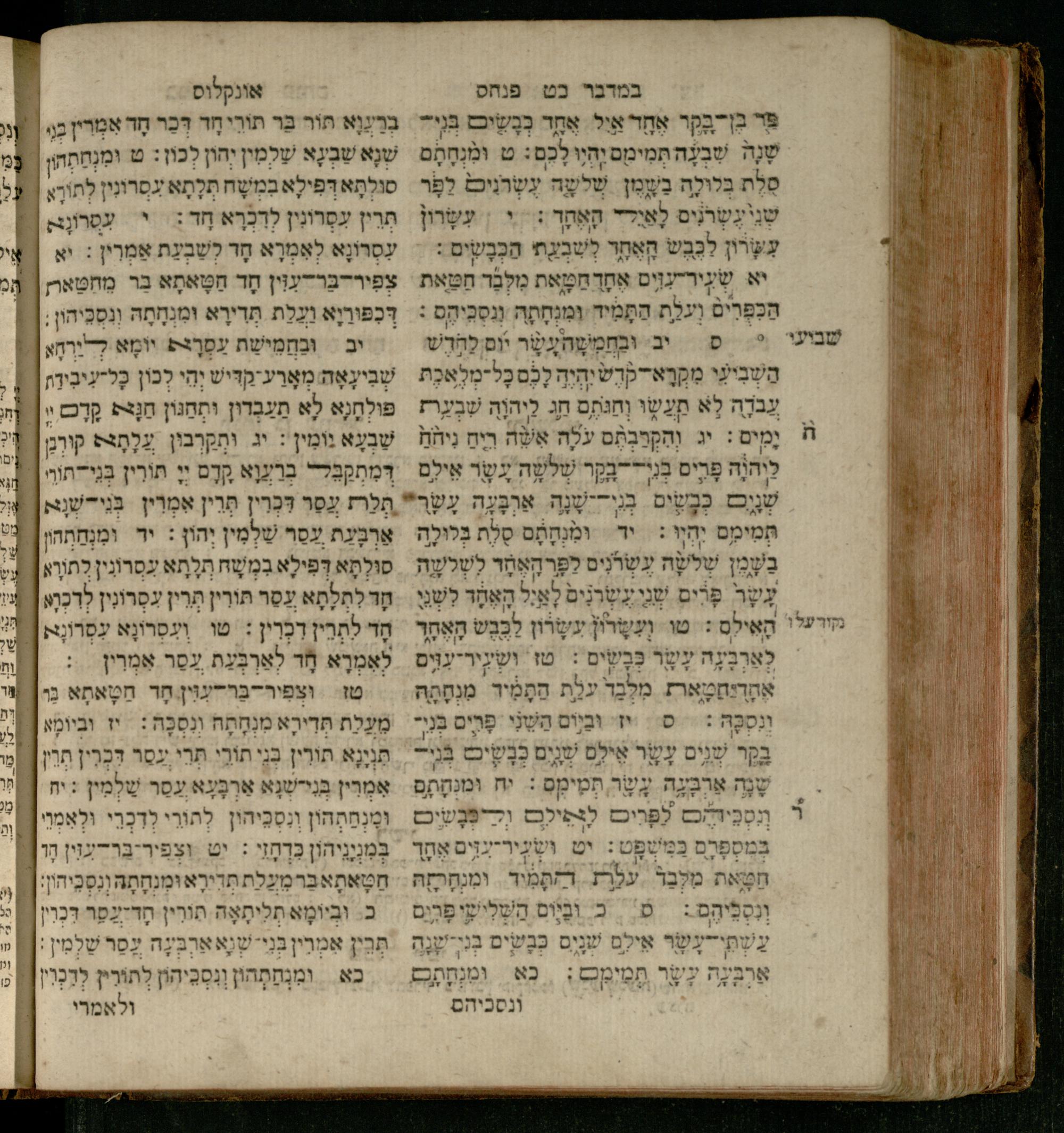 Sefer Ba-midbar : ʿim 3 targumim ... pe. Rashi, u-ferush Rashbam u-ferush Mikhlal yofi min R. Shelomoh ben Melekh u-ferush Beʾer reḥovot ʿal diḳduḳe Rashi ... ṿe-Sefer ha-Ḥinukh me-Rabenu Aharon ha-Leṿi ... / huva le-vet ha-defus ʿa.y. ha-torani ha-mufla mo.h.r.R. Pinḥas Eliyahu ben ha-torani ha-manhig mo.h.r.R. Ḥayim Kats u-veno ha-torani ha-mufla mo.h.r.R. Shemuʾel Kats mi-ḳ.ḳ. Ṿilnaספר במדבר : עם ג׳ תרגומים ... פירש״י, ופירוש רש״בם ופירוש מכלל יופי מן ר׳ שלמה בן מלך ופירוש באר רחובות על דקדוקי רש״י ... וספר החינוך מרבינו אהרן הלוי ... / הובא לבית הדפוס ע״י התורני המופלא מוה״רר פנחס אליהו בן התורני המנהיג מוה״רר חיים כ״ץ ובנו התורני המופלא מוה״רר שמואל כ״ץ מק״ק ווילנא