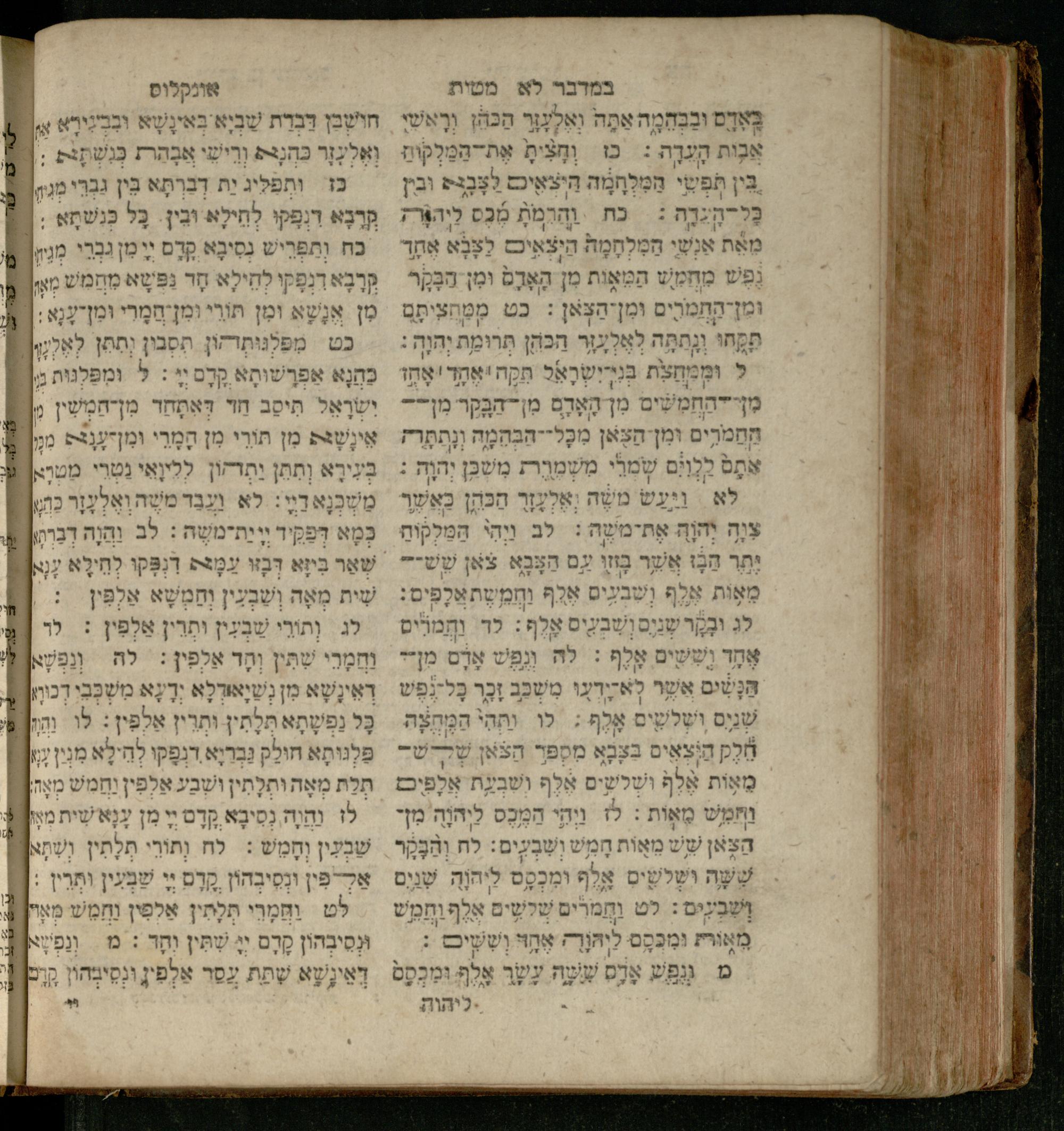Sefer Ba-midbar : ʿim 3 targumim ... pe. Rashi, u-ferush Rashbam u-ferush Mikhlal yofi min R. Shelomoh ben Melekh u-ferush Beʾer reḥovot ʿal diḳduḳe Rashi ... ṿe-Sefer ha-Ḥinukh me-Rabenu Aharon ha-Leṿi ... / huva le-vet ha-defus ʿa.y. ha-torani ha-mufla mo.h.r.R. Pinḥas Eliyahu ben ha-torani ha-manhig mo.h.r.R. Ḥayim Kats u-veno ha-torani ha-mufla mo.h.r.R. Shemuʾel Kats mi-ḳ.ḳ. Ṿilnaספר במדבר : עם ג׳ תרגומים ... פירש״י, ופירוש רש״בם ופירוש מכלל יופי מן ר׳ שלמה בן מלך ופירוש באר רחובות על דקדוקי רש״י ... וספר החינוך מרבינו אהרן הלוי ... / הובא לבית הדפוס ע״י התורני המופלא מוה״רר פנחס אליהו בן התורני המנהיג מוה״רר חיים כ״ץ ובנו התורני המופלא מוה״רר שמואל כ״ץ מק״ק ווילנא