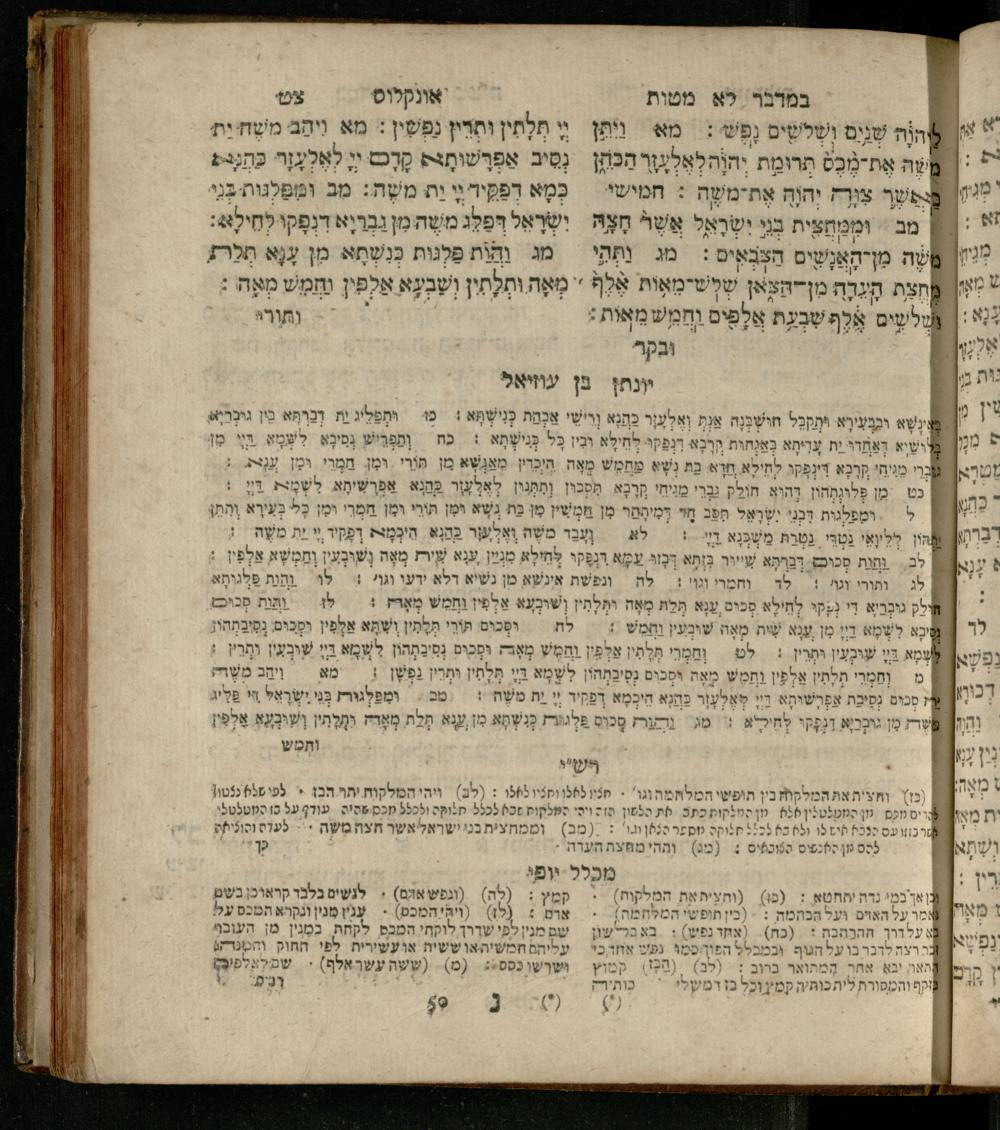 Sefer Ba-midbar : ʿim 3 targumim ... pe. Rashi, u-ferush Rashbam u-ferush Mikhlal yofi min R. Shelomoh ben Melekh u-ferush Beʾer reḥovot ʿal diḳduḳe Rashi ... ṿe-Sefer ha-Ḥinukh me-Rabenu Aharon ha-Leṿi ... / huva le-vet ha-defus ʿa.y. ha-torani ha-mufla mo.h.r.R. Pinḥas Eliyahu ben ha-torani ha-manhig mo.h.r.R. Ḥayim Kats u-veno ha-torani ha-mufla mo.h.r.R. Shemuʾel Kats mi-ḳ.ḳ. Ṿilnaספר במדבר : עם ג׳ תרגומים ... פירש״י, ופירוש רש״בם ופירוש מכלל יופי מן ר׳ שלמה בן מלך ופירוש באר רחובות על דקדוקי רש״י ... וספר החינוך מרבינו אהרן הלוי ... / הובא לבית הדפוס ע״י התורני המופלא מוה״רר פנחס אליהו בן התורני המנהיג מוה״רר חיים כ״ץ ובנו התורני המופלא מוה״רר שמואל כ״ץ מק״ק ווילנא