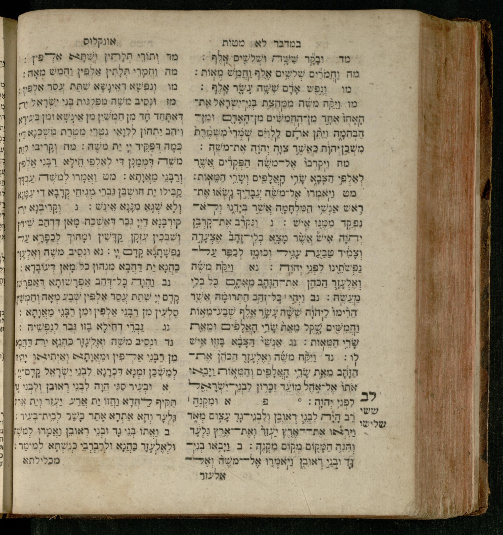 Sefer Ba-midbar : ʿim 3 targumim ... pe. Rashi, u-ferush Rashbam u-ferush Mikhlal yofi min R. Shelomoh ben Melekh u-ferush Beʾer reḥovot ʿal diḳduḳe Rashi ... ṿe-Sefer ha-Ḥinukh me-Rabenu Aharon ha-Leṿi ... / huva le-vet ha-defus ʿa.y. ha-torani ha-mufla mo.h.r.R. Pinḥas Eliyahu ben ha-torani ha-manhig mo.h.r.R. Ḥayim Kats u-veno ha-torani ha-mufla mo.h.r.R. Shemuʾel Kats mi-ḳ.ḳ. Ṿilnaספר במדבר : עם ג׳ תרגומים ... פירש״י, ופירוש רש״בם ופירוש מכלל יופי מן ר׳ שלמה בן מלך ופירוש באר רחובות על דקדוקי רש״י ... וספר החינוך מרבינו אהרן הלוי ... / הובא לבית הדפוס ע״י התורני המופלא מוה״רר פנחס אליהו בן התורני המנהיג מוה״רר חיים כ״ץ ובנו התורני המופלא מוה״רר שמואל כ״ץ מק״ק ווילנא