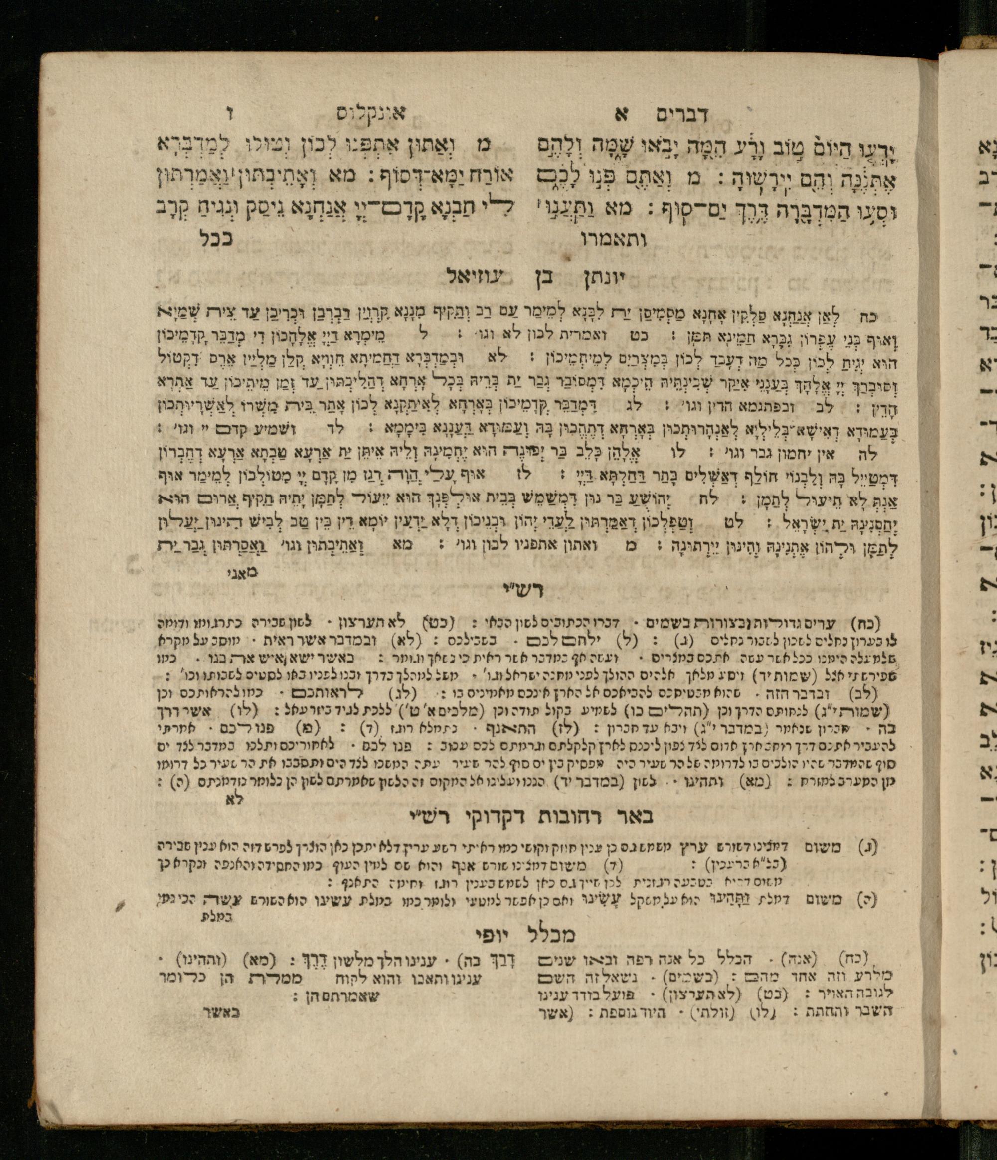 Sefer Devarim : ʿim 3 targumim ... pe. Rashi, u-ferush Rashbam u-ferush Mikhlal yofi min R. Shelomoh ben Melekh u-ferush Beʾer reḥovot ʿal diḳduḳe Rashi ... ṿe-Sefer ha-Ḥinukh me-Rabenu Aharon ha-Leṿi ... / huva le-vet ha-defus ʿa.y. ha-torani ha-mufla mo.h.r.R. Pinḥas Eliyahu ben ha-torani ha-manhig mo.h.r.R. Ḥayim Kats u-veno ha-torani ha-mufla mo.h.r.R. Shemuʾel Kats mi-ḳ.ḳ. Ṿilnaספר דברים : עם ג׳ תרגומים ... פירש״י, ופירוש רש״בם ופירוש מכלל יופי מן ר׳ שלמה בן מלך ופירוש באר רחובות על דקדוקי רש״י ... וספר החינוך מרבינו אהרן הלוי ... / הובא לבית הדפוס ע״י התורני המופלא מוה״רר פנחס אליהו בן התורני המנהיג מוה״רר חיים כ״ץ ובנו התורני המופלא מוה״רר שמואל כ״ץ מק״ק ווילנא