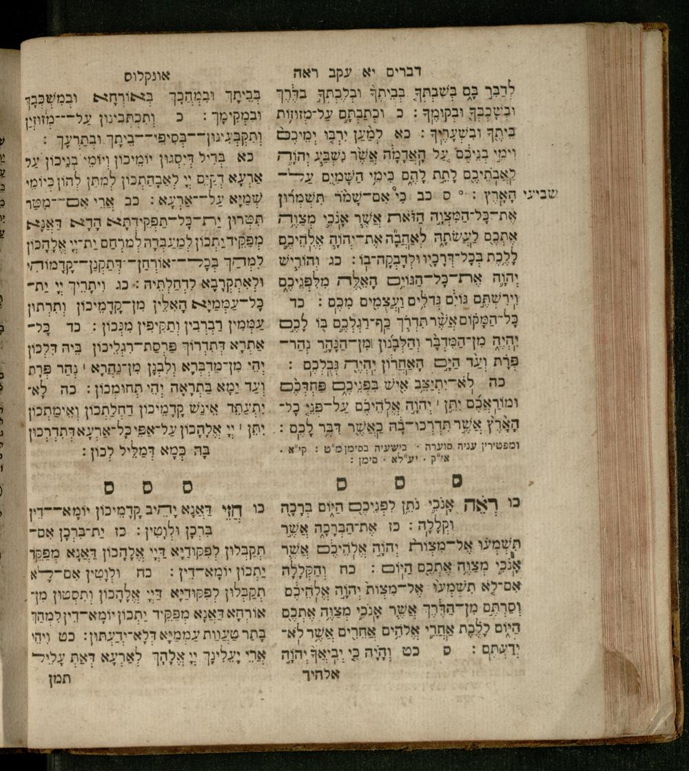 Sefer Devarim : ʿim 3 targumim ... pe. Rashi, u-ferush Rashbam u-ferush Mikhlal yofi min R. Shelomoh ben Melekh u-ferush Beʾer reḥovot ʿal diḳduḳe Rashi ... ṿe-Sefer ha-Ḥinukh me-Rabenu Aharon ha-Leṿi ... / huva le-vet ha-defus ʿa.y. ha-torani ha-mufla mo.h.r.R. Pinḥas Eliyahu ben ha-torani ha-manhig mo.h.r.R. Ḥayim Kats u-veno ha-torani ha-mufla mo.h.r.R. Shemuʾel Kats mi-ḳ.ḳ. Ṿilnaספר דברים : עם ג׳ תרגומים ... פירש״י, ופירוש רש״בם ופירוש מכלל יופי מן ר׳ שלמה בן מלך ופירוש באר רחובות על דקדוקי רש״י ... וספר החינוך מרבינו אהרן הלוי ... / הובא לבית הדפוס ע״י התורני המופלא מוה״רר פנחס אליהו בן התורני המנהיג מוה״רר חיים כ״ץ ובנו התורני המופלא מוה״רר שמואל כ״ץ מק״ק ווילנא