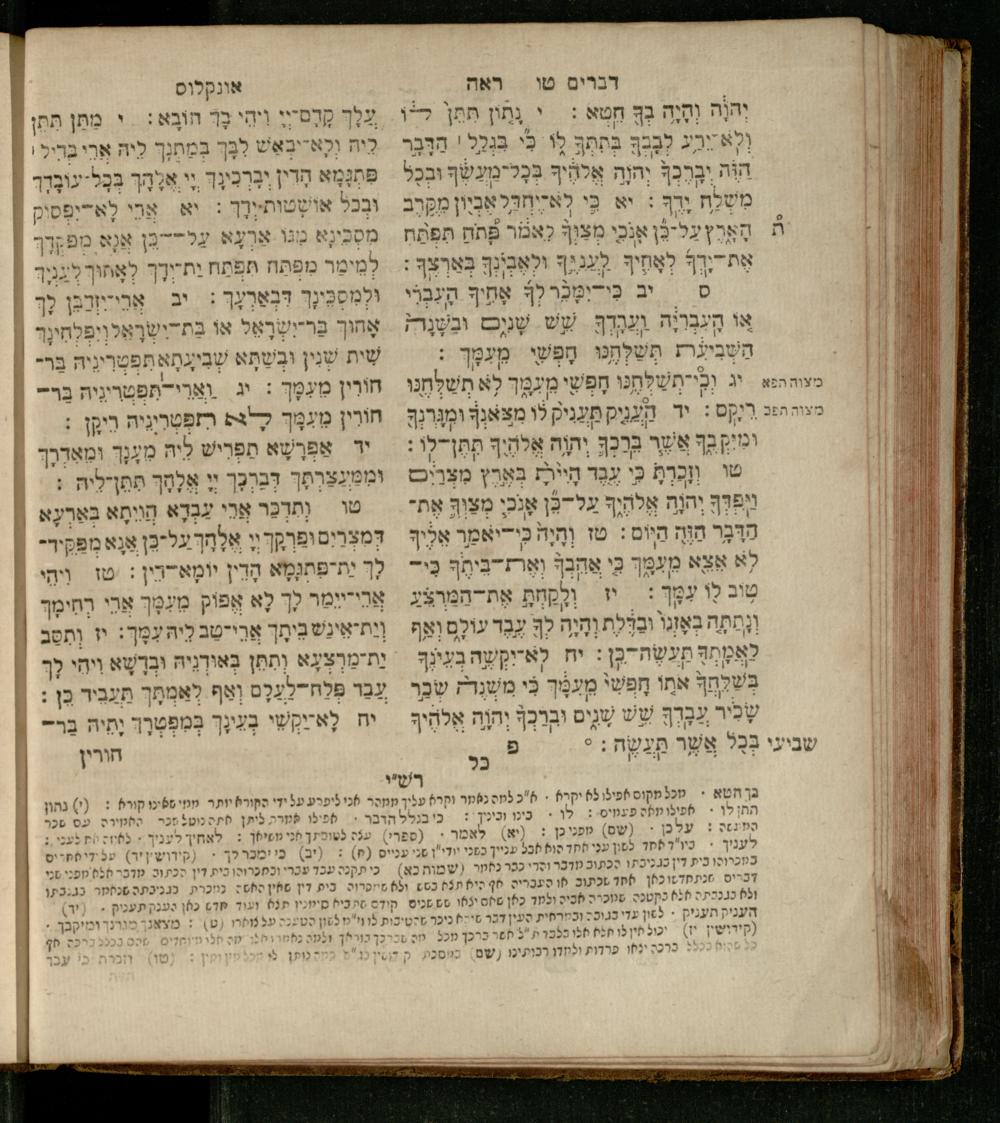 Sefer Devarim : ʿim 3 targumim ... pe. Rashi, u-ferush Rashbam u-ferush Mikhlal yofi min R. Shelomoh ben Melekh u-ferush Beʾer reḥovot ʿal diḳduḳe Rashi ... ṿe-Sefer ha-Ḥinukh me-Rabenu Aharon ha-Leṿi ... / huva le-vet ha-defus ʿa.y. ha-torani ha-mufla mo.h.r.R. Pinḥas Eliyahu ben ha-torani ha-manhig mo.h.r.R. Ḥayim Kats u-veno ha-torani ha-mufla mo.h.r.R. Shemuʾel Kats mi-ḳ.ḳ. Ṿilnaספר דברים : עם ג׳ תרגומים ... פירש״י, ופירוש רש״בם ופירוש מכלל יופי מן ר׳ שלמה בן מלך ופירוש באר רחובות על דקדוקי רש״י ... וספר החינוך מרבינו אהרן הלוי ... / הובא לבית הדפוס ע״י התורני המופלא מוה״רר פנחס אליהו בן התורני המנהיג מוה״רר חיים כ״ץ ובנו התורני המופלא מוה״רר שמואל כ״ץ מק״ק ווילנא