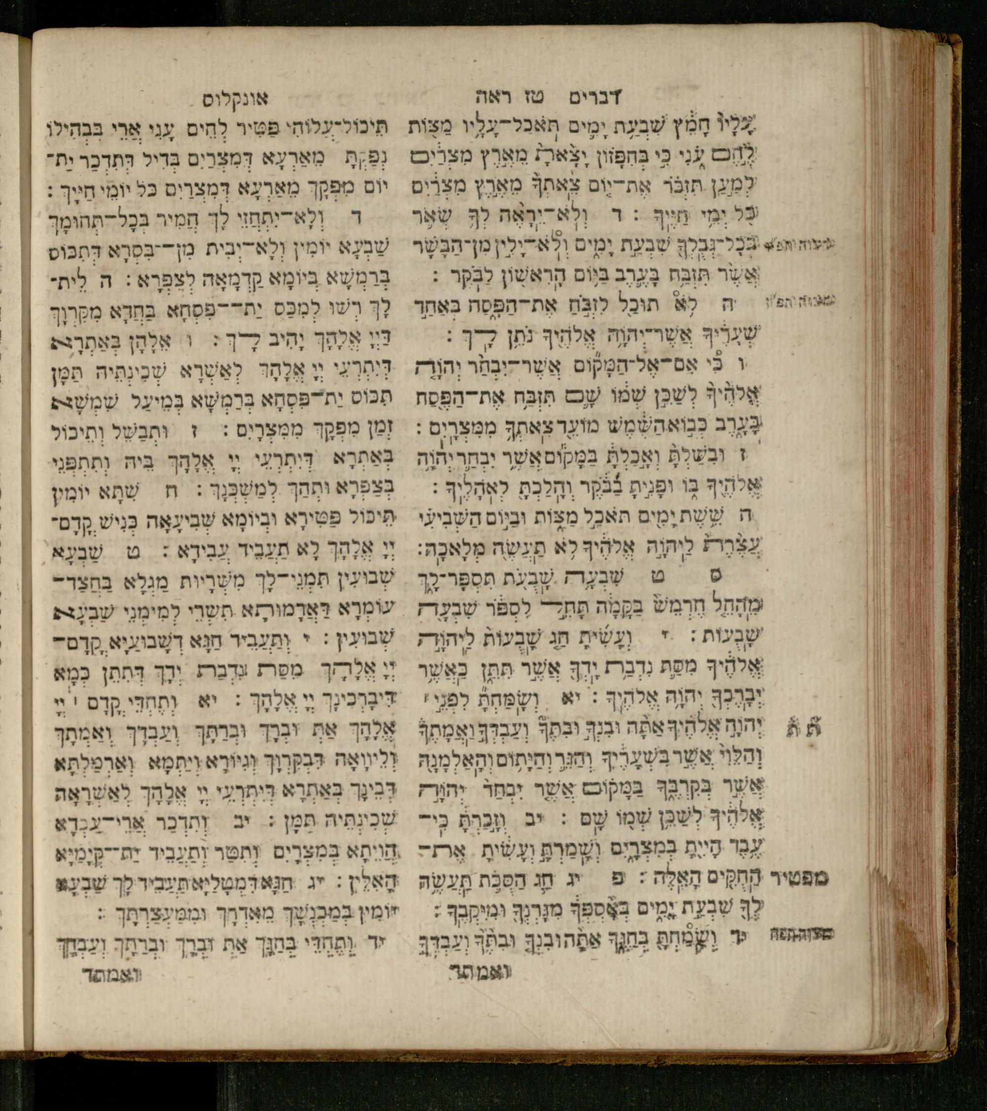 Sefer Devarim : ʿim 3 targumim ... pe. Rashi, u-ferush Rashbam u-ferush Mikhlal yofi min R. Shelomoh ben Melekh u-ferush Beʾer reḥovot ʿal diḳduḳe Rashi ... ṿe-Sefer ha-Ḥinukh me-Rabenu Aharon ha-Leṿi ... / huva le-vet ha-defus ʿa.y. ha-torani ha-mufla mo.h.r.R. Pinḥas Eliyahu ben ha-torani ha-manhig mo.h.r.R. Ḥayim Kats u-veno ha-torani ha-mufla mo.h.r.R. Shemuʾel Kats mi-ḳ.ḳ. Ṿilnaספר דברים : עם ג׳ תרגומים ... פירש״י, ופירוש רש״בם ופירוש מכלל יופי מן ר׳ שלמה בן מלך ופירוש באר רחובות על דקדוקי רש״י ... וספר החינוך מרבינו אהרן הלוי ... / הובא לבית הדפוס ע״י התורני המופלא מוה״רר פנחס אליהו בן התורני המנהיג מוה״רר חיים כ״ץ ובנו התורני המופלא מוה״רר שמואל כ״ץ מק״ק ווילנא
