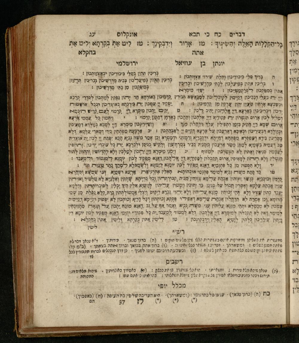 Sefer Devarim : ʿim 3 targumim ... pe. Rashi, u-ferush Rashbam u-ferush Mikhlal yofi min R. Shelomoh ben Melekh u-ferush Beʾer reḥovot ʿal diḳduḳe Rashi ... ṿe-Sefer ha-Ḥinukh me-Rabenu Aharon ha-Leṿi ... / huva le-vet ha-defus ʿa.y. ha-torani ha-mufla mo.h.r.R. Pinḥas Eliyahu ben ha-torani ha-manhig mo.h.r.R. Ḥayim Kats u-veno ha-torani ha-mufla mo.h.r.R. Shemuʾel Kats mi-ḳ.ḳ. Ṿilnaספר דברים : עם ג׳ תרגומים ... פירש״י, ופירוש רש״בם ופירוש מכלל יופי מן ר׳ שלמה בן מלך ופירוש באר רחובות על דקדוקי רש״י ... וספר החינוך מרבינו אהרן הלוי ... / הובא לבית הדפוס ע״י התורני המופלא מוה״רר פנחס אליהו בן התורני המנהיג מוה״רר חיים כ״ץ ובנו התורני המופלא מוה״רר שמואל כ״ץ מק״ק ווילנא