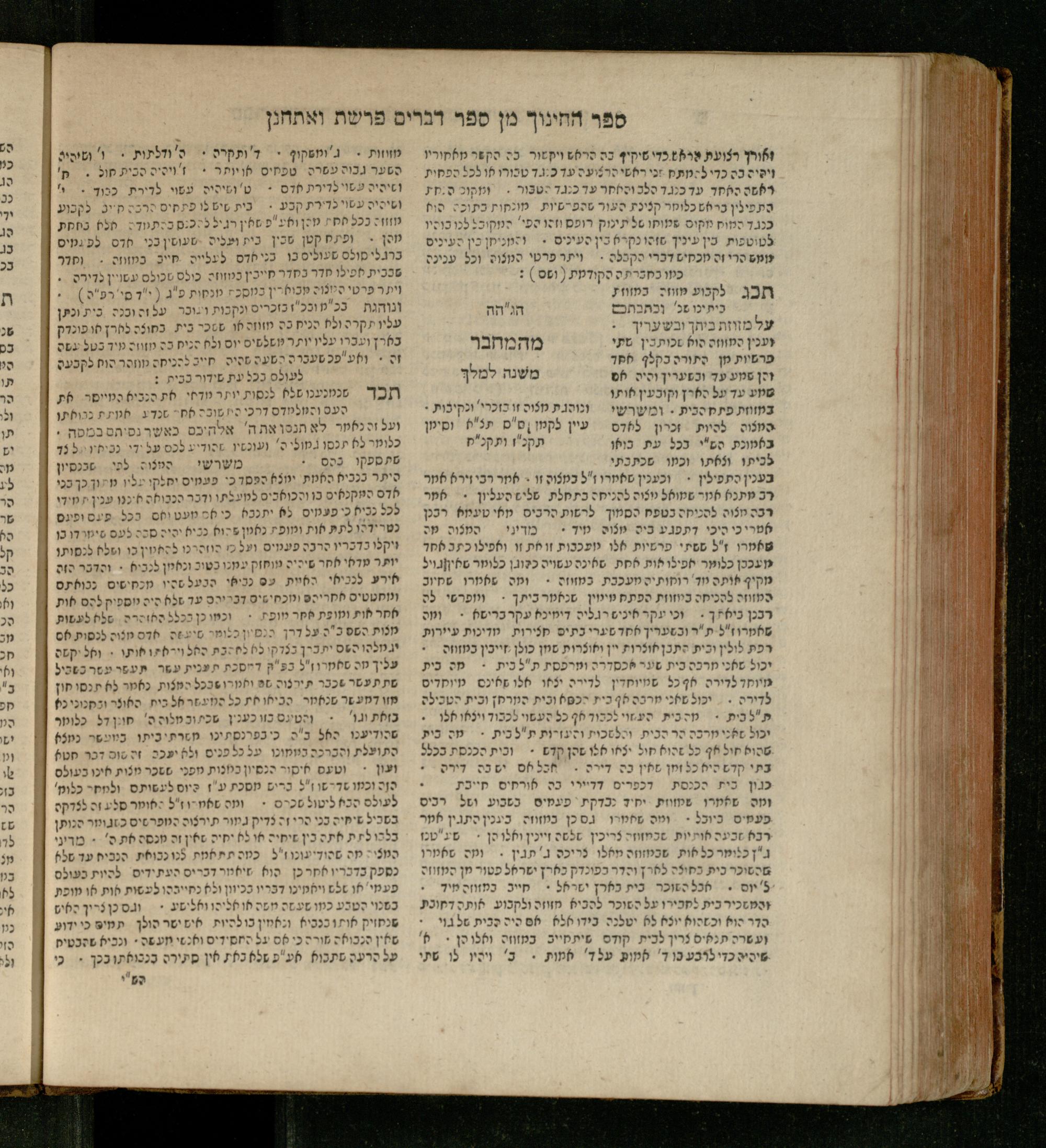 Sefer Devarim : ʿim 3 targumim ... pe. Rashi, u-ferush Rashbam u-ferush Mikhlal yofi min R. Shelomoh ben Melekh u-ferush Beʾer reḥovot ʿal diḳduḳe Rashi ... ṿe-Sefer ha-Ḥinukh me-Rabenu Aharon ha-Leṿi ... / huva le-vet ha-defus ʿa.y. ha-torani ha-mufla mo.h.r.R. Pinḥas Eliyahu ben ha-torani ha-manhig mo.h.r.R. Ḥayim Kats u-veno ha-torani ha-mufla mo.h.r.R. Shemuʾel Kats mi-ḳ.ḳ. Ṿilnaספר דברים : עם ג׳ תרגומים ... פירש״י, ופירוש רש״בם ופירוש מכלל יופי מן ר׳ שלמה בן מלך ופירוש באר רחובות על דקדוקי רש״י ... וספר החינוך מרבינו אהרן הלוי ... / הובא לבית הדפוס ע״י התורני המופלא מוה״רר פנחס אליהו בן התורני המנהיג מוה״רר חיים כ״ץ ובנו התורני המופלא מוה״רר שמואל כ״ץ מק״ק ווילנא