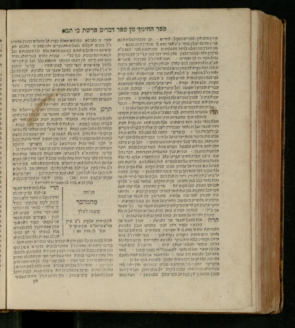 Sefer Devarim : ʿim 3 targumim ... pe. Rashi, u-ferush Rashbam u-ferush Mikhlal yofi min R. Shelomoh ben Melekh u-ferush Beʾer reḥovot ʿal diḳduḳe Rashi ... ṿe-Sefer ha-Ḥinukh me-Rabenu Aharon ha-Leṿi ... / huva le-vet ha-defus ʿa.y. ha-torani ha-mufla mo.h.r.R. Pinḥas Eliyahu ben ha-torani ha-manhig mo.h.r.R. Ḥayim Kats u-veno ha-torani ha-mufla mo.h.r.R. Shemuʾel Kats mi-ḳ.ḳ. Ṿilnaספר דברים : עם ג׳ תרגומים ... פירש״י, ופירוש רש״בם ופירוש מכלל יופי מן ר׳ שלמה בן מלך ופירוש באר רחובות על דקדוקי רש״י ... וספר החינוך מרבינו אהרן הלוי ... / הובא לבית הדפוס ע״י התורני המופלא מוה״רר פנחס אליהו בן התורני המנהיג מוה״רר חיים כ״ץ ובנו התורני המופלא מוה״רר שמואל כ״ץ מק״ק ווילנא