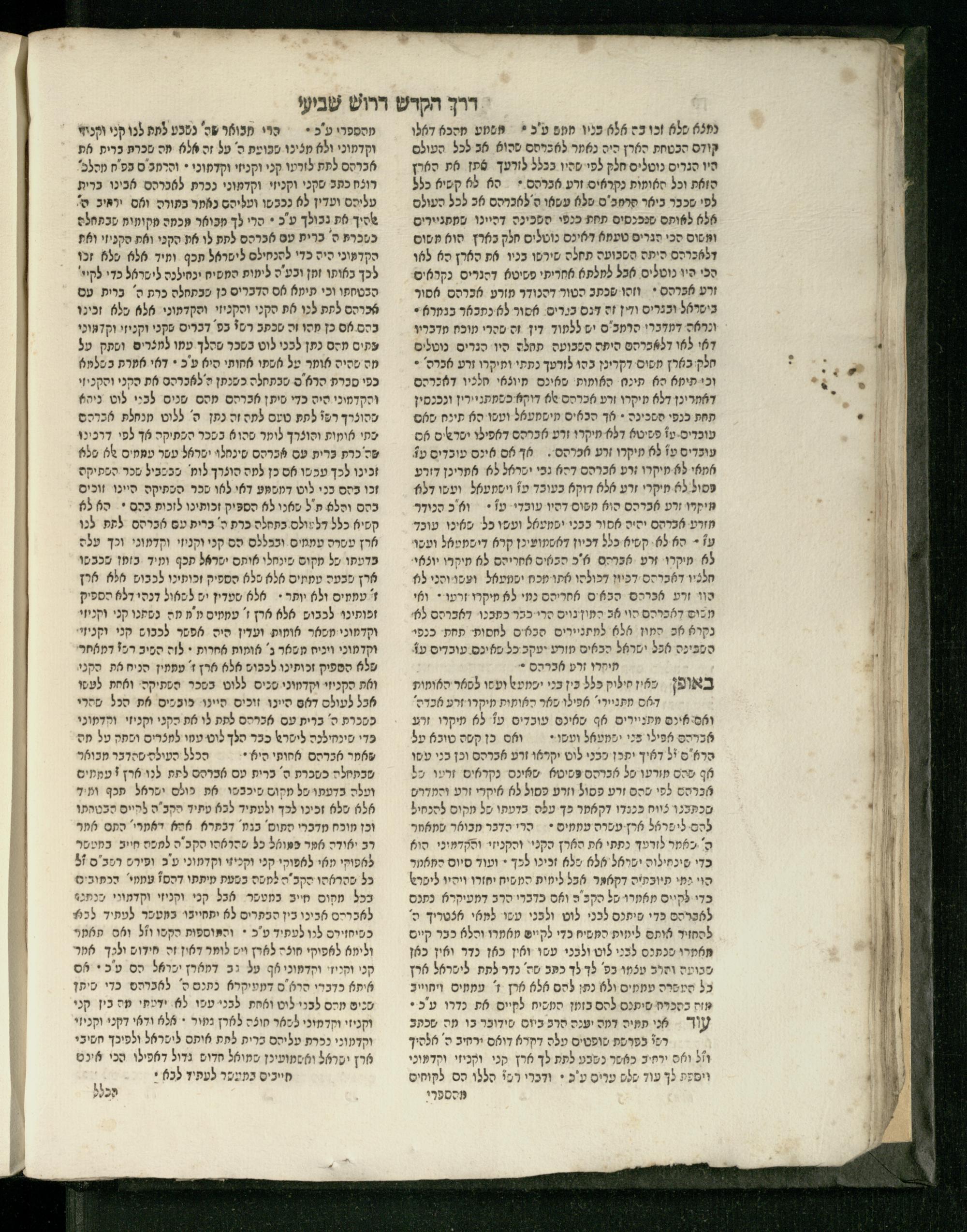 Sefer Parashat derakhim / ... Yudan Rozanes ... ṿe-natnu le-hadpiso shenit ... ʿa.y. R. Natan Netaʿ ben ... R. Yehiʾel Mikhal z.ts.l. mi-Yomplah [?] ṿe-ha-sheni ... R. Shemuʾel b.m.h.r.r. Sheneʾur Zis Kind z.ts.l. Ish Lifshits mi-Levuv n.r.ṿ. ... le-mizbaḥ ha-defu. ...ספר פרשת דרכים / יודן ... ראזאניס ... ונתנו להדפיסו שנית ... ע״י ... ר׳ נתן נטע בן ... ר׳ יחיאל מיכל זצ״ל מיאמפלה והשני ... ר׳ שמואל במהר״ר שניאור זיס קינד זצ״ל איש ליפשיץ מלבוב נר״ו ... למזבח הדפו׳ ...