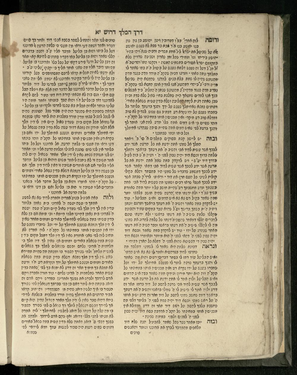 Sefer Parashat derakhim / ... Yudan Rozanes ... ṿe-natnu le-hadpiso shenit ... ʿa.y. R. Natan Netaʿ ben ... R. Yehiʾel Mikhal z.ts.l. mi-Yomplah [?] ṿe-ha-sheni ... R. Shemuʾel b.m.h.r.r. Sheneʾur Zis Kind z.ts.l. Ish Lifshits mi-Levuv n.r.ṿ. ... le-mizbaḥ ha-defu. ...ספר פרשת דרכים / יודן ... ראזאניס ... ונתנו להדפיסו שנית ... ע״י ... ר׳ נתן נטע בן ... ר׳ יחיאל מיכל זצ״ל מיאמפלה והשני ... ר׳ שמואל במהר״ר שניאור זיס קינד זצ״ל איש ליפשיץ מלבוב נר״ו ... למזבח הדפו׳ ...