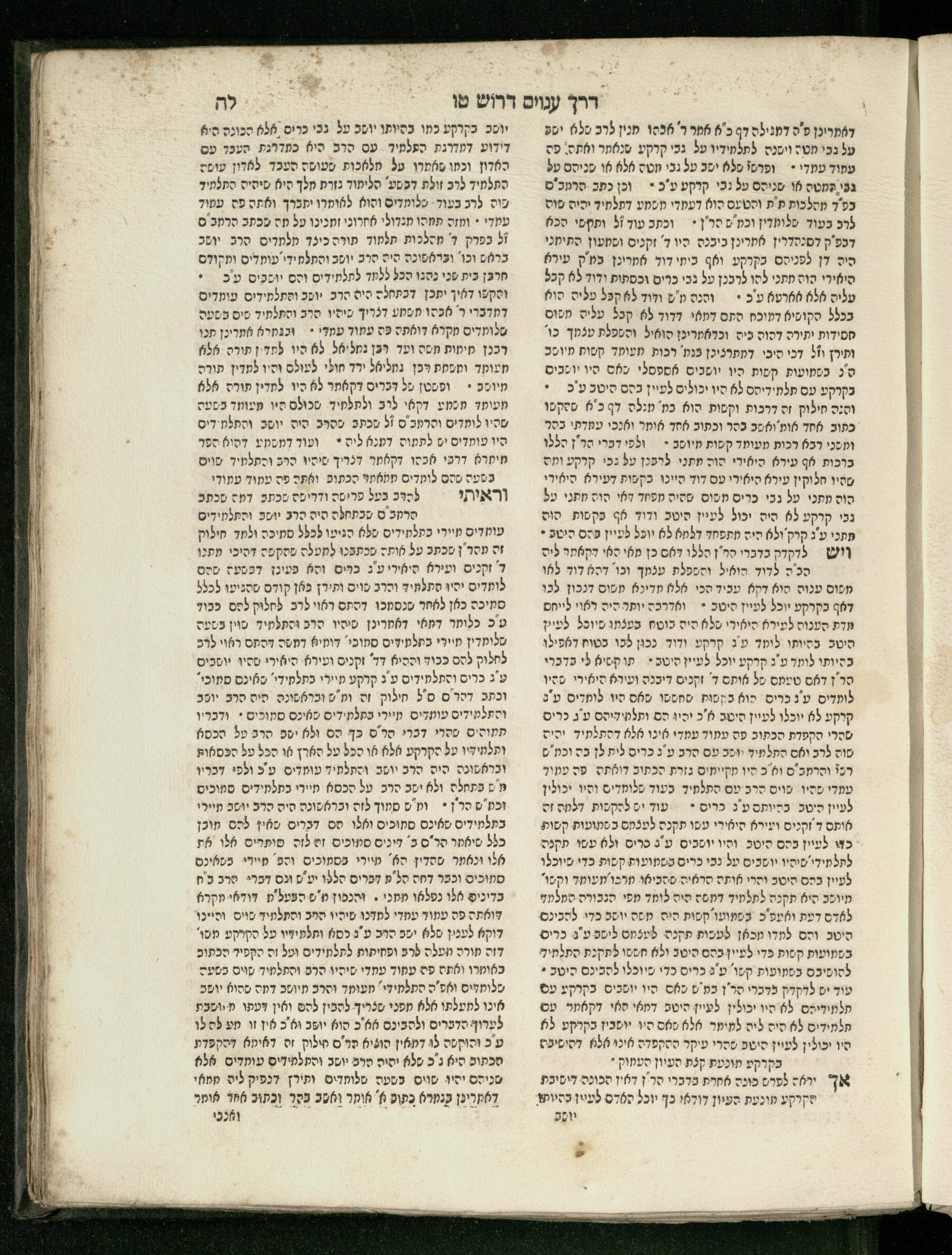 Sefer Parashat derakhim / ... Yudan Rozanes ... ṿe-natnu le-hadpiso shenit ... ʿa.y. R. Natan Netaʿ ben ... R. Yehiʾel Mikhal z.ts.l. mi-Yomplah [?] ṿe-ha-sheni ... R. Shemuʾel b.m.h.r.r. Sheneʾur Zis Kind z.ts.l. Ish Lifshits mi-Levuv n.r.ṿ. ... le-mizbaḥ ha-defu. ...ספר פרשת דרכים / יודן ... ראזאניס ... ונתנו להדפיסו שנית ... ע״י ... ר׳ נתן נטע בן ... ר׳ יחיאל מיכל זצ״ל מיאמפלה והשני ... ר׳ שמואל במהר״ר שניאור זיס קינד זצ״ל איש ליפשיץ מלבוב נר״ו ... למזבח הדפו׳ ...