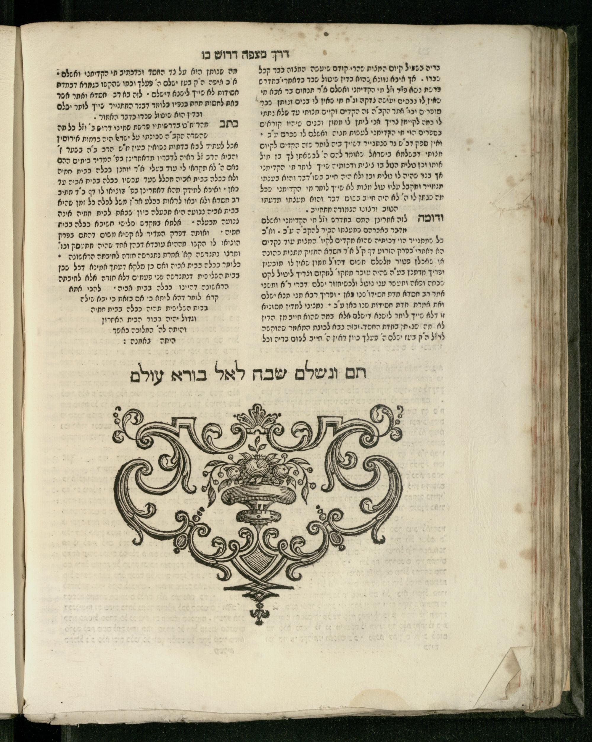 Sefer Parashat derakhim / ... Yudan Rozanes ... ṿe-natnu le-hadpiso shenit ... ʿa.y. R. Natan Netaʿ ben ... R. Yehiʾel Mikhal z.ts.l. mi-Yomplah [?] ṿe-ha-sheni ... R. Shemuʾel b.m.h.r.r. Sheneʾur Zis Kind z.ts.l. Ish Lifshits mi-Levuv n.r.ṿ. ... le-mizbaḥ ha-defu. ...ספר פרשת דרכים / יודן ... ראזאניס ... ונתנו להדפיסו שנית ... ע״י ... ר׳ נתן נטע בן ... ר׳ יחיאל מיכל זצ״ל מיאמפלה והשני ... ר׳ שמואל במהר״ר שניאור זיס קינד זצ״ל איש ליפשיץ מלבוב נר״ו ... למזבח הדפו׳ ...