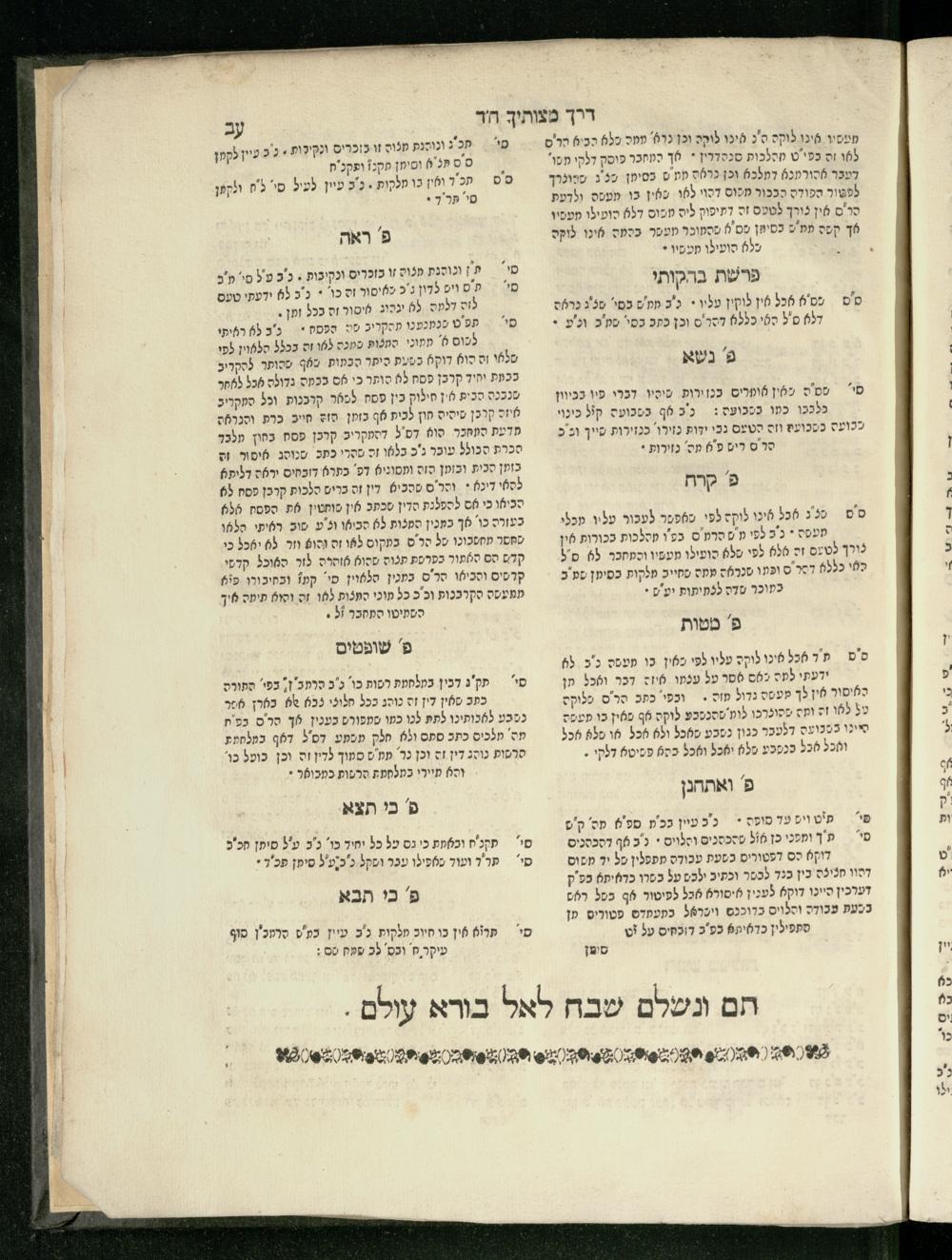 Sefer Parashat derakhim / ... Yudan Rozanes ... ṿe-natnu le-hadpiso shenit ... ʿa.y. R. Natan Netaʿ ben ... R. Yehiʾel Mikhal z.ts.l. mi-Yomplah [?] ṿe-ha-sheni ... R. Shemuʾel b.m.h.r.r. Sheneʾur Zis Kind z.ts.l. Ish Lifshits mi-Levuv n.r.ṿ. ... le-mizbaḥ ha-defu. ...ספר פרשת דרכים / יודן ... ראזאניס ... ונתנו להדפיסו שנית ... ע״י ... ר׳ נתן נטע בן ... ר׳ יחיאל מיכל זצ״ל מיאמפלה והשני ... ר׳ שמואל במהר״ר שניאור זיס קינד זצ״ל איש ליפשיץ מלבוב נר״ו ... למזבח הדפו׳ ...