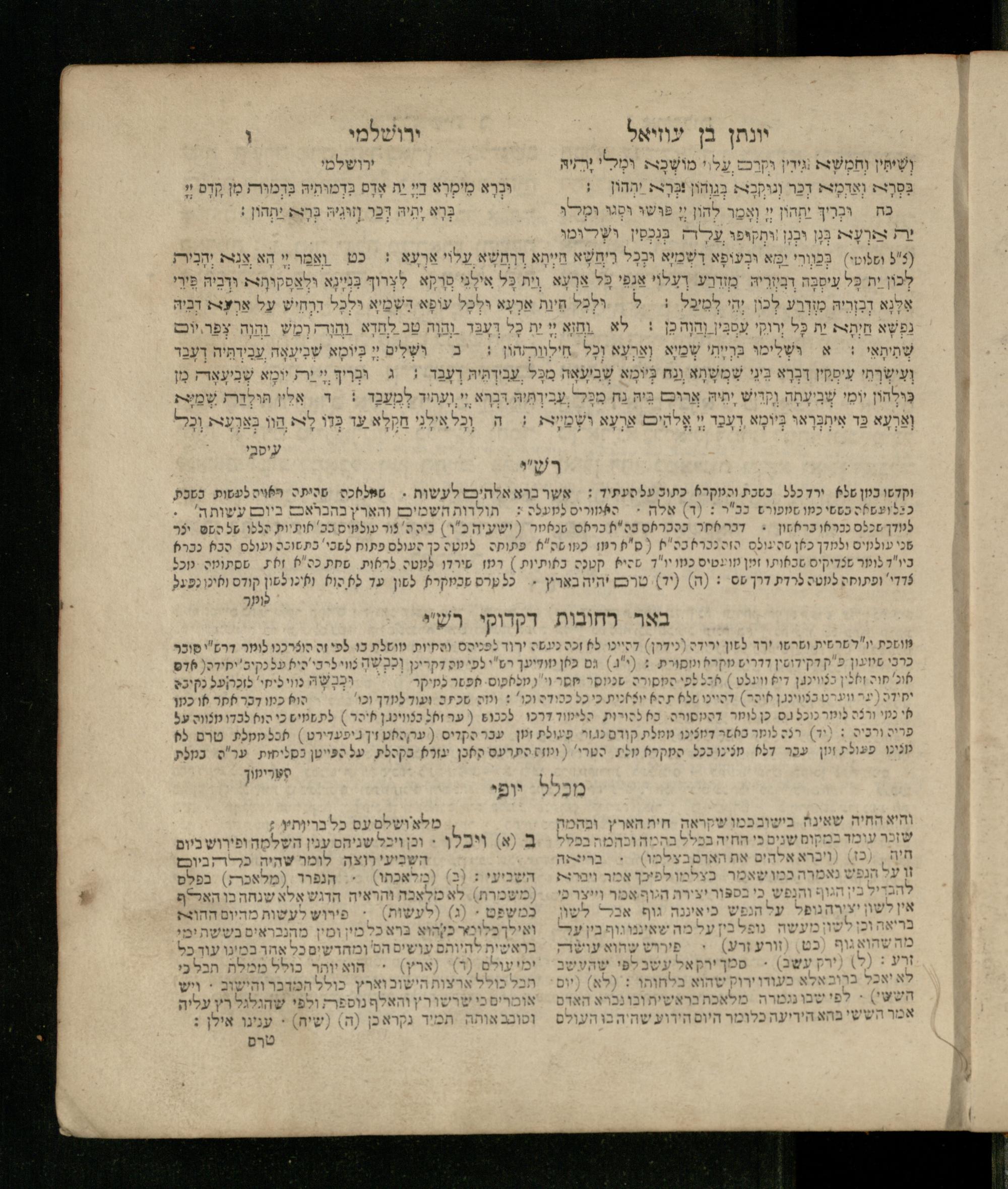 Sefer Be-reshit : ʿim 3 targumim ... pe. Rashi, u-ferush Rashbam u-ferush Mikhlal yofi min R. Shelomoh ben Melekh u-ferush Beʾer reḥovot ʿal diḳduḳe Rashi ... ṿe-Sefer ha-Ḥinukh me-Rabenu Aharon ha-Leṿi ... / huva le-vet ha-defus ʿa.y. ha-torani ha-mufla mo.h.r.R. Pinḥas Eliyahu ben ha-torani ha-manhig mo.h.r.R. Ḥayim Kats u-veno ha-torani ha-mufla mo.h.r.R. Shemuʾel Kats mi-ḳ.ḳ. Ṿilnaספר בראשית : עם ג׳ תרגומים ... פירש״י, ופירוש רש״בם ופירוש מכלל יופי מן ר׳ שלמה בן מלך ופירוש באר רחובות על דקדוקי רש״י ... וספר החינוך מרבינו אהרן הלוי ... / הובא לבית הדפוס ע״י התורני המופלא מוה״רר פנחס אליהו בן התורני המנהיג מוה״רר חיים כ״ץ ובנו התורני המופלא מוה״רר שמואל כ״ץ מק״ק ווילנא