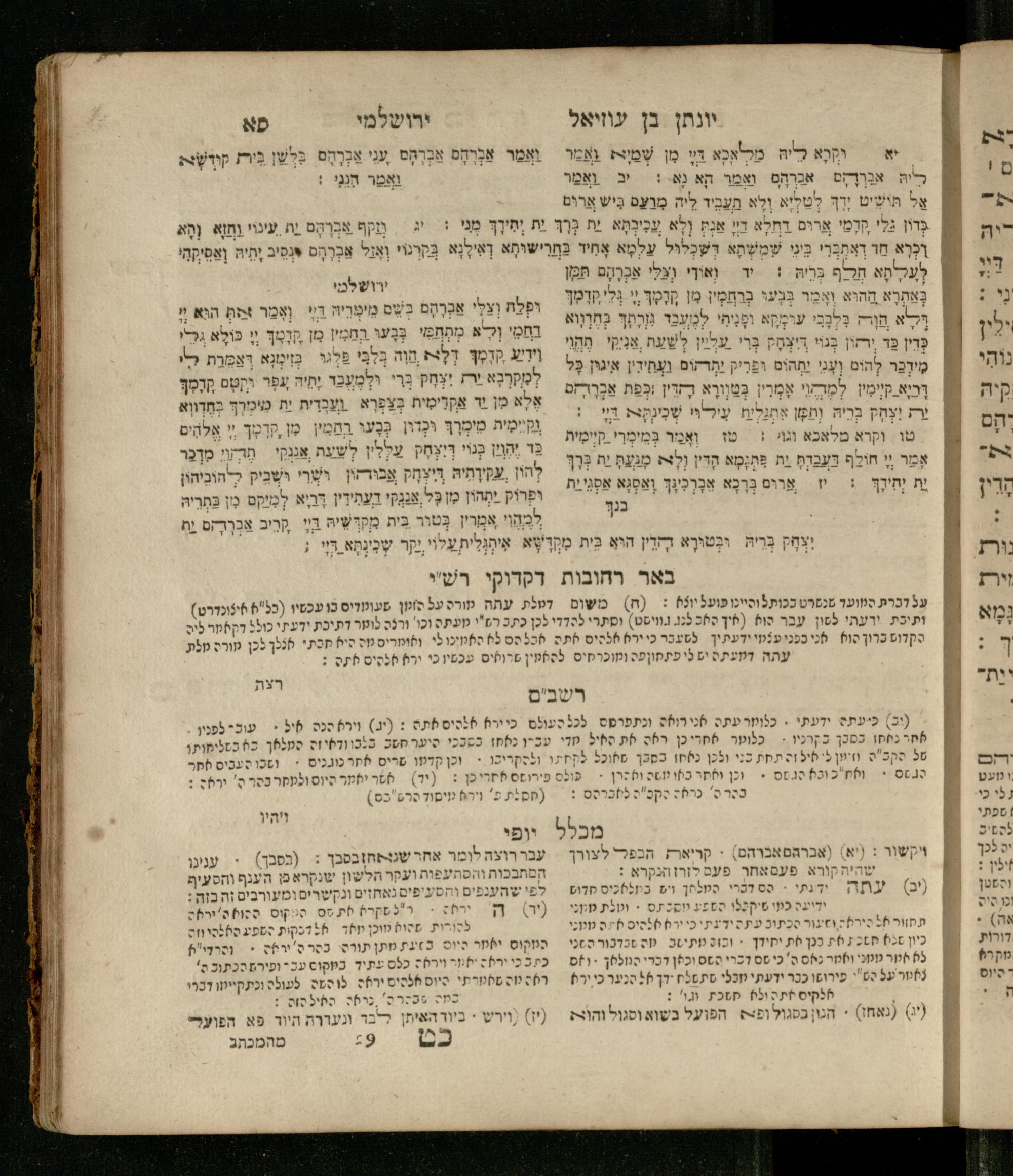 Sefer Be-reshit : ʿim 3 targumim ... pe. Rashi, u-ferush Rashbam u-ferush Mikhlal yofi min R. Shelomoh ben Melekh u-ferush Beʾer reḥovot ʿal diḳduḳe Rashi ... ṿe-Sefer ha-Ḥinukh me-Rabenu Aharon ha-Leṿi ... / huva le-vet ha-defus ʿa.y. ha-torani ha-mufla mo.h.r.R. Pinḥas Eliyahu ben ha-torani ha-manhig mo.h.r.R. Ḥayim Kats u-veno ha-torani ha-mufla mo.h.r.R. Shemuʾel Kats mi-ḳ.ḳ. Ṿilnaספר בראשית : עם ג׳ תרגומים ... פירש״י, ופירוש רש״בם ופירוש מכלל יופי מן ר׳ שלמה בן מלך ופירוש באר רחובות על דקדוקי רש״י ... וספר החינוך מרבינו אהרן הלוי ... / הובא לבית הדפוס ע״י התורני המופלא מוה״רר פנחס אליהו בן התורני המנהיג מוה״רר חיים כ״ץ ובנו התורני המופלא מוה״רר שמואל כ״ץ מק״ק ווילנא