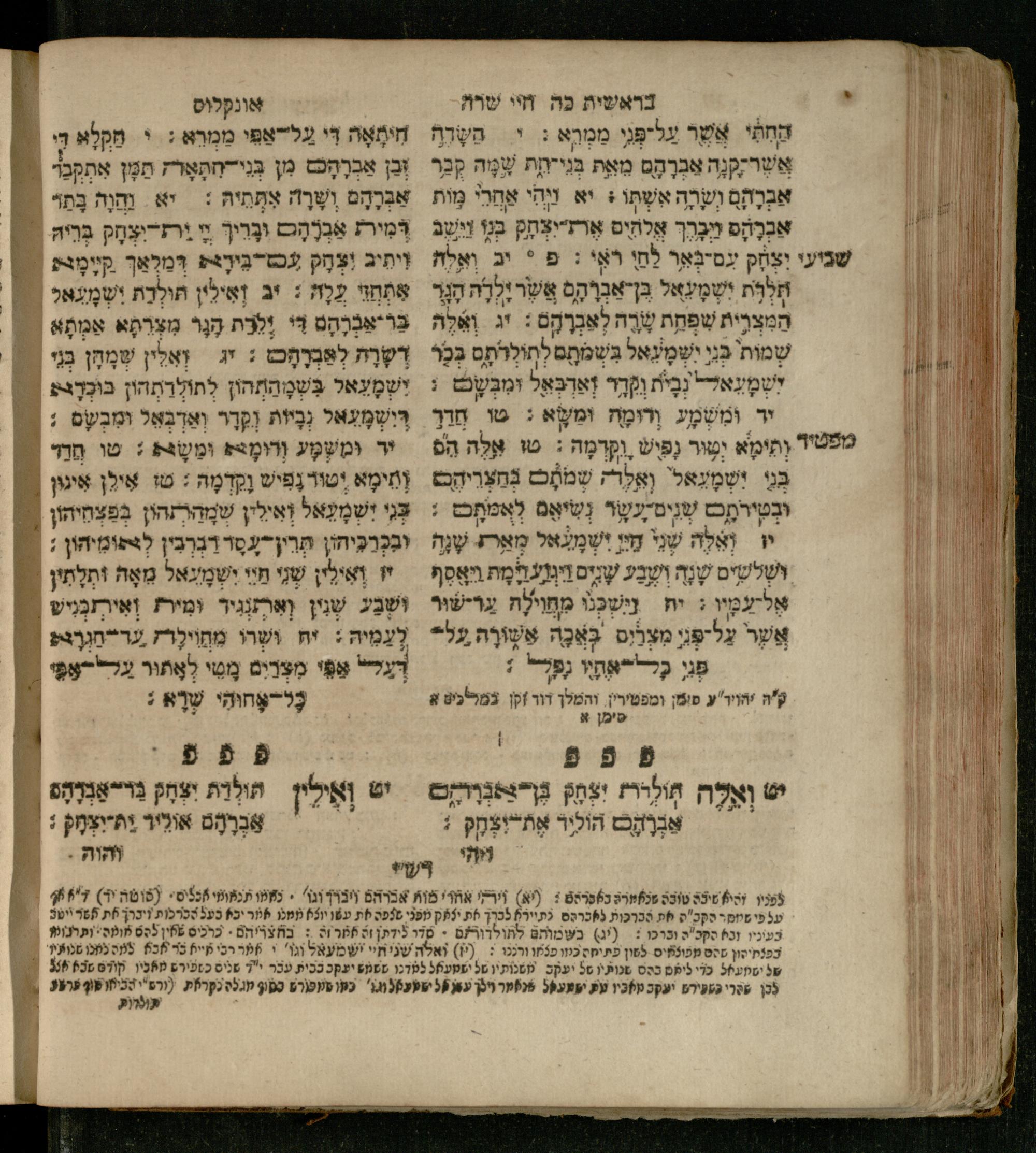 Sefer Be-reshit : ʿim 3 targumim ... pe. Rashi, u-ferush Rashbam u-ferush Mikhlal yofi min R. Shelomoh ben Melekh u-ferush Beʾer reḥovot ʿal diḳduḳe Rashi ... ṿe-Sefer ha-Ḥinukh me-Rabenu Aharon ha-Leṿi ... / huva le-vet ha-defus ʿa.y. ha-torani ha-mufla mo.h.r.R. Pinḥas Eliyahu ben ha-torani ha-manhig mo.h.r.R. Ḥayim Kats u-veno ha-torani ha-mufla mo.h.r.R. Shemuʾel Kats mi-ḳ.ḳ. Ṿilnaספר בראשית : עם ג׳ תרגומים ... פירש״י, ופירוש רש״בם ופירוש מכלל יופי מן ר׳ שלמה בן מלך ופירוש באר רחובות על דקדוקי רש״י ... וספר החינוך מרבינו אהרן הלוי ... / הובא לבית הדפוס ע״י התורני המופלא מוה״רר פנחס אליהו בן התורני המנהיג מוה״רר חיים כ״ץ ובנו התורני המופלא מוה״רר שמואל כ״ץ מק״ק ווילנא