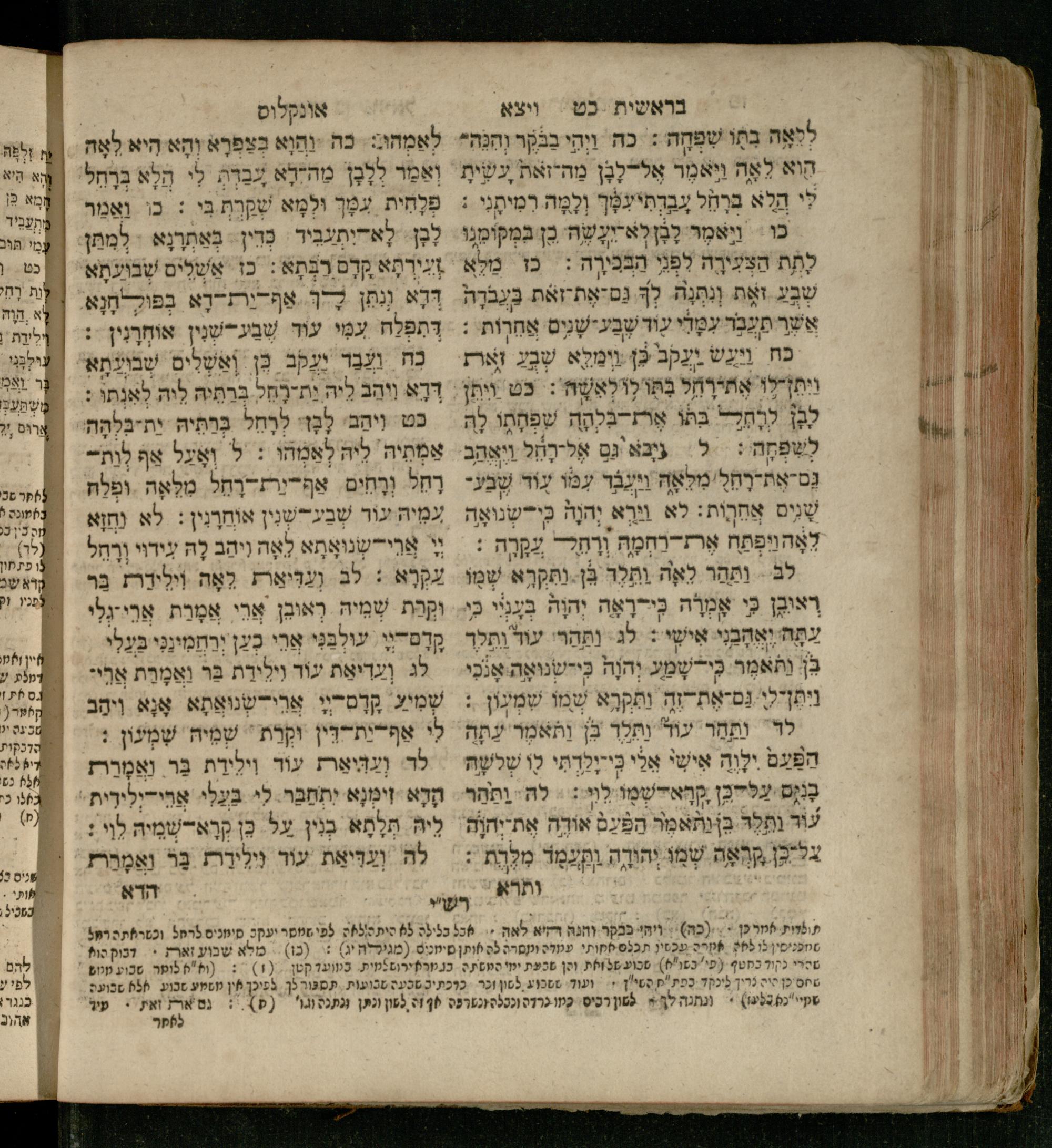 Sefer Be-reshit : ʿim 3 targumim ... pe. Rashi, u-ferush Rashbam u-ferush Mikhlal yofi min R. Shelomoh ben Melekh u-ferush Beʾer reḥovot ʿal diḳduḳe Rashi ... ṿe-Sefer ha-Ḥinukh me-Rabenu Aharon ha-Leṿi ... / huva le-vet ha-defus ʿa.y. ha-torani ha-mufla mo.h.r.R. Pinḥas Eliyahu ben ha-torani ha-manhig mo.h.r.R. Ḥayim Kats u-veno ha-torani ha-mufla mo.h.r.R. Shemuʾel Kats mi-ḳ.ḳ. Ṿilnaספר בראשית : עם ג׳ תרגומים ... פירש״י, ופירוש רש״בם ופירוש מכלל יופי מן ר׳ שלמה בן מלך ופירוש באר רחובות על דקדוקי רש״י ... וספר החינוך מרבינו אהרן הלוי ... / הובא לבית הדפוס ע״י התורני המופלא מוה״רר פנחס אליהו בן התורני המנהיג מוה״רר חיים כ״ץ ובנו התורני המופלא מוה״רר שמואל כ״ץ מק״ק ווילנא