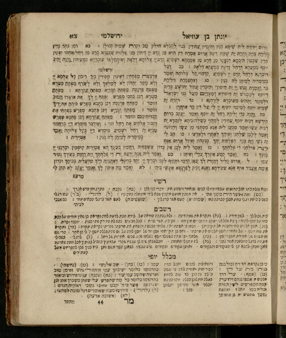 Sefer Be-reshit : ʿim 3 targumim ... pe. Rashi, u-ferush Rashbam u-ferush Mikhlal yofi min R. Shelomoh ben Melekh u-ferush Beʾer reḥovot ʿal diḳduḳe Rashi ... ṿe-Sefer ha-Ḥinukh me-Rabenu Aharon ha-Leṿi ... / huva le-vet ha-defus ʿa.y. ha-torani ha-mufla mo.h.r.R. Pinḥas Eliyahu ben ha-torani ha-manhig mo.h.r.R. Ḥayim Kats u-veno ha-torani ha-mufla mo.h.r.R. Shemuʾel Kats mi-ḳ.ḳ. Ṿilnaספר בראשית : עם ג׳ תרגומים ... פירש״י, ופירוש רש״בם ופירוש מכלל יופי מן ר׳ שלמה בן מלך ופירוש באר רחובות על דקדוקי רש״י ... וספר החינוך מרבינו אהרן הלוי ... / הובא לבית הדפוס ע״י התורני המופלא מוה״רר פנחס אליהו בן התורני המנהיג מוה״רר חיים כ״ץ ובנו התורני המופלא מוה״רר שמואל כ״ץ מק״ק ווילנא