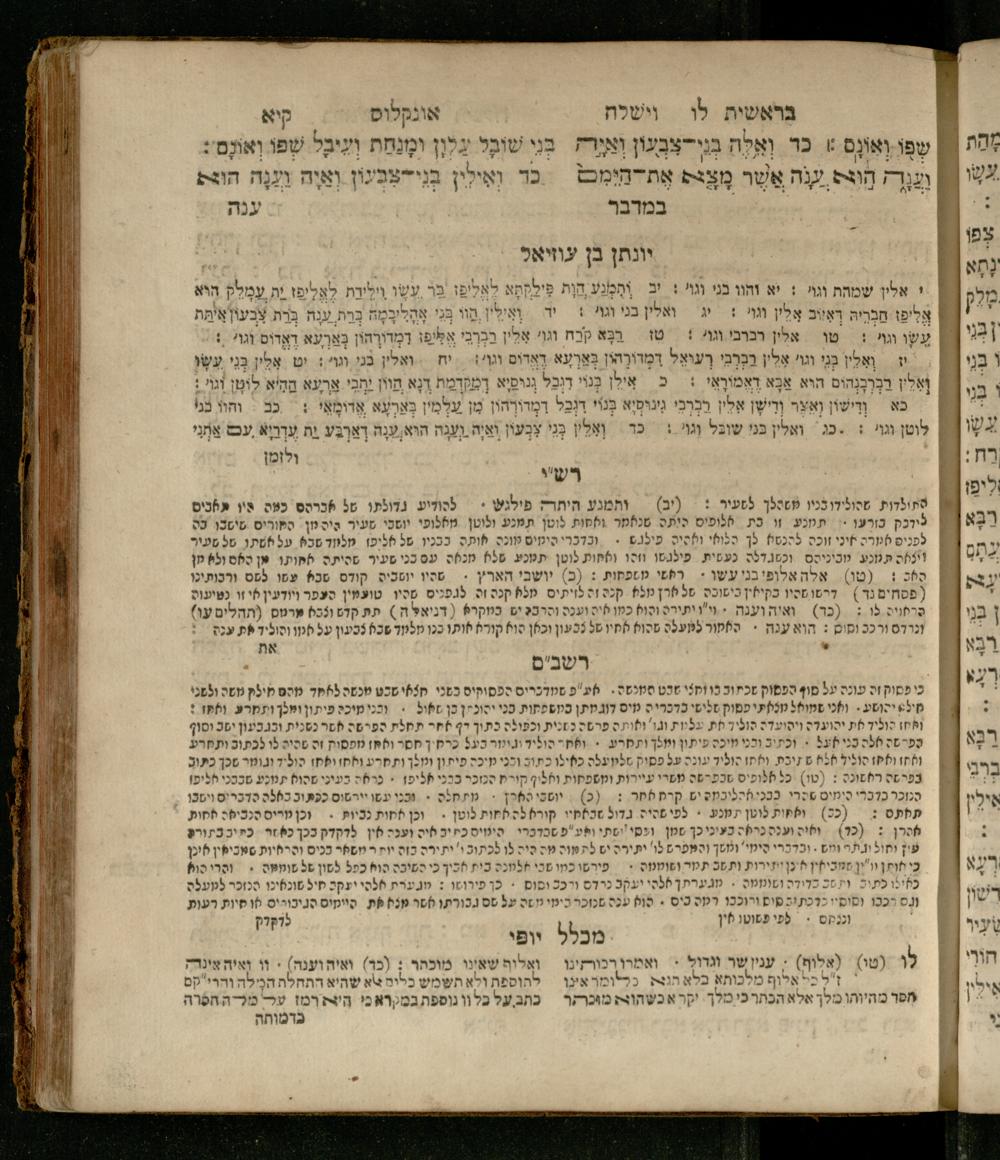 Sefer Be-reshit : ʿim 3 targumim ... pe. Rashi, u-ferush Rashbam u-ferush Mikhlal yofi min R. Shelomoh ben Melekh u-ferush Beʾer reḥovot ʿal diḳduḳe Rashi ... ṿe-Sefer ha-Ḥinukh me-Rabenu Aharon ha-Leṿi ... / huva le-vet ha-defus ʿa.y. ha-torani ha-mufla mo.h.r.R. Pinḥas Eliyahu ben ha-torani ha-manhig mo.h.r.R. Ḥayim Kats u-veno ha-torani ha-mufla mo.h.r.R. Shemuʾel Kats mi-ḳ.ḳ. Ṿilnaספר בראשית : עם ג׳ תרגומים ... פירש״י, ופירוש רש״בם ופירוש מכלל יופי מן ר׳ שלמה בן מלך ופירוש באר רחובות על דקדוקי רש״י ... וספר החינוך מרבינו אהרן הלוי ... / הובא לבית הדפוס ע״י התורני המופלא מוה״רר פנחס אליהו בן התורני המנהיג מוה״רר חיים כ״ץ ובנו התורני המופלא מוה״רר שמואל כ״ץ מק״ק ווילנא