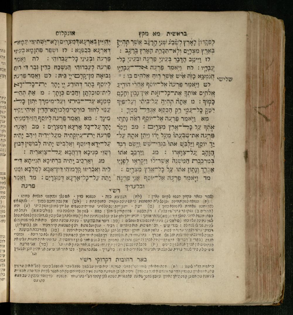 Sefer Be-reshit : ʿim 3 targumim ... pe. Rashi, u-ferush Rashbam u-ferush Mikhlal yofi min R. Shelomoh ben Melekh u-ferush Beʾer reḥovot ʿal diḳduḳe Rashi ... ṿe-Sefer ha-Ḥinukh me-Rabenu Aharon ha-Leṿi ... / huva le-vet ha-defus ʿa.y. ha-torani ha-mufla mo.h.r.R. Pinḥas Eliyahu ben ha-torani ha-manhig mo.h.r.R. Ḥayim Kats u-veno ha-torani ha-mufla mo.h.r.R. Shemuʾel Kats mi-ḳ.ḳ. Ṿilnaספר בראשית : עם ג׳ תרגומים ... פירש״י, ופירוש רש״בם ופירוש מכלל יופי מן ר׳ שלמה בן מלך ופירוש באר רחובות על דקדוקי רש״י ... וספר החינוך מרבינו אהרן הלוי ... / הובא לבית הדפוס ע״י התורני המופלא מוה״רר פנחס אליהו בן התורני המנהיג מוה״רר חיים כ״ץ ובנו התורני המופלא מוה״רר שמואל כ״ץ מק״ק ווילנא