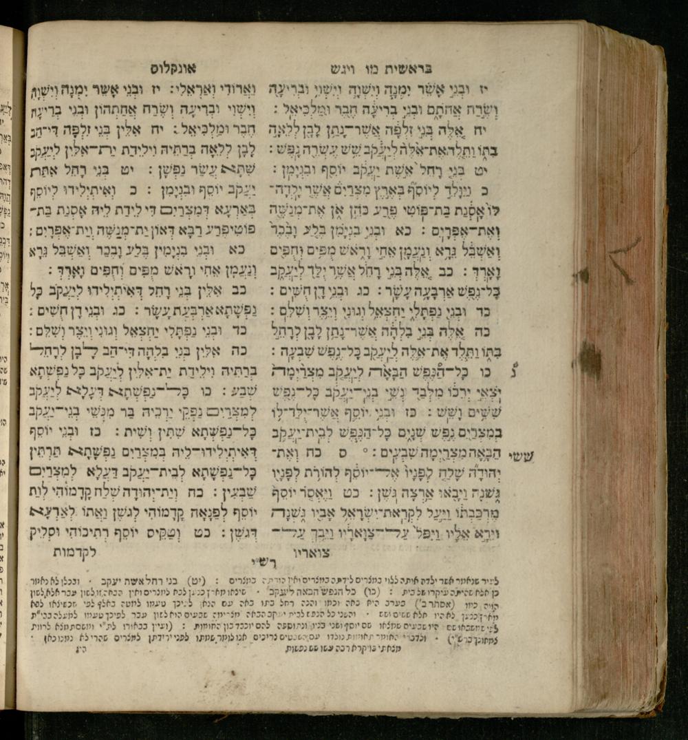 Sefer Be-reshit : ʿim 3 targumim ... pe. Rashi, u-ferush Rashbam u-ferush Mikhlal yofi min R. Shelomoh ben Melekh u-ferush Beʾer reḥovot ʿal diḳduḳe Rashi ... ṿe-Sefer ha-Ḥinukh me-Rabenu Aharon ha-Leṿi ... / huva le-vet ha-defus ʿa.y. ha-torani ha-mufla mo.h.r.R. Pinḥas Eliyahu ben ha-torani ha-manhig mo.h.r.R. Ḥayim Kats u-veno ha-torani ha-mufla mo.h.r.R. Shemuʾel Kats mi-ḳ.ḳ. Ṿilnaספר בראשית : עם ג׳ תרגומים ... פירש״י, ופירוש רש״בם ופירוש מכלל יופי מן ר׳ שלמה בן מלך ופירוש באר רחובות על דקדוקי רש״י ... וספר החינוך מרבינו אהרן הלוי ... / הובא לבית הדפוס ע״י התורני המופלא מוה״רר פנחס אליהו בן התורני המנהיג מוה״רר חיים כ״ץ ובנו התורני המופלא מוה״רר שמואל כ״ץ מק״ק ווילנא