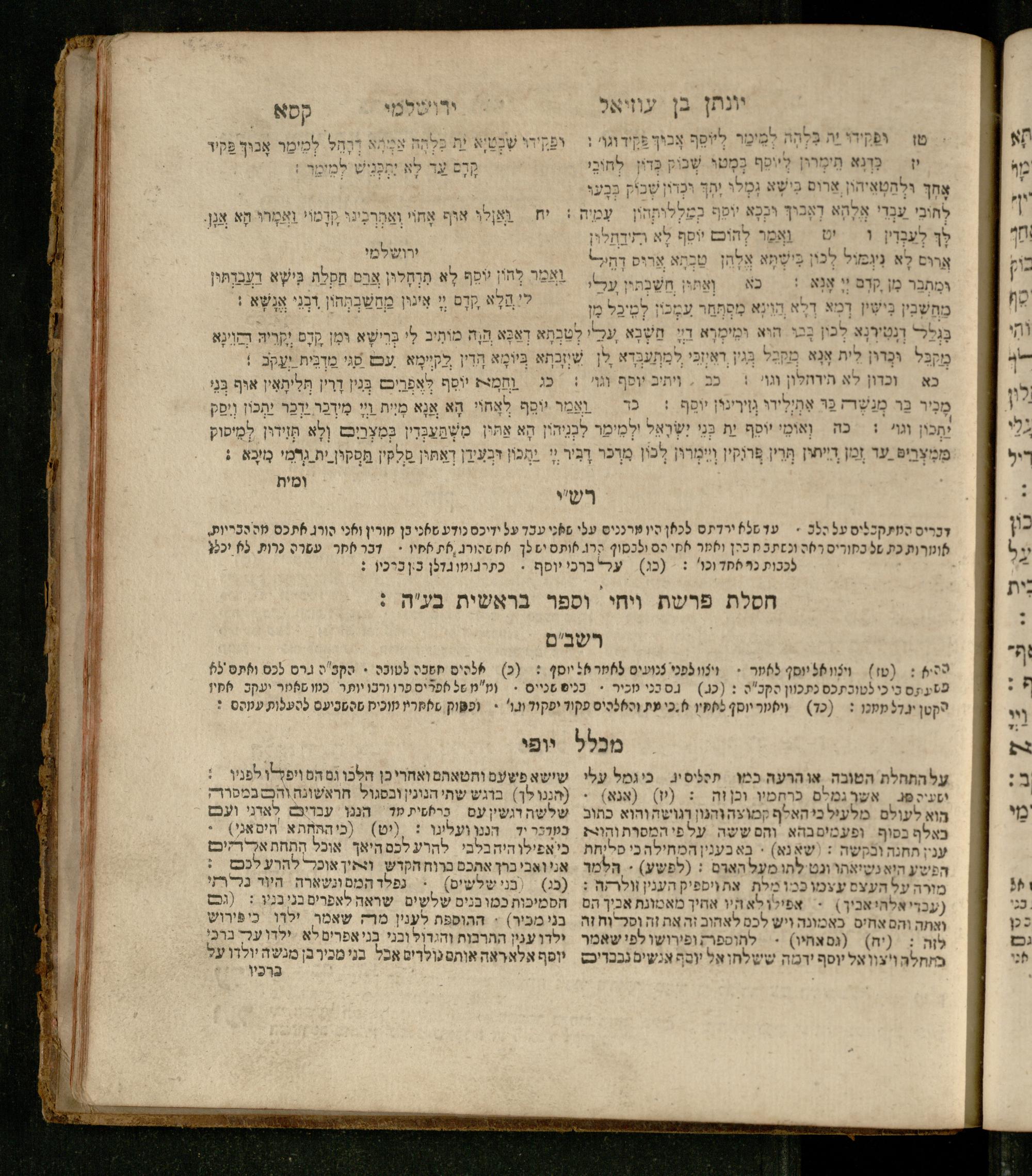 Sefer Be-reshit : ʿim 3 targumim ... pe. Rashi, u-ferush Rashbam u-ferush Mikhlal yofi min R. Shelomoh ben Melekh u-ferush Beʾer reḥovot ʿal diḳduḳe Rashi ... ṿe-Sefer ha-Ḥinukh me-Rabenu Aharon ha-Leṿi ... / huva le-vet ha-defus ʿa.y. ha-torani ha-mufla mo.h.r.R. Pinḥas Eliyahu ben ha-torani ha-manhig mo.h.r.R. Ḥayim Kats u-veno ha-torani ha-mufla mo.h.r.R. Shemuʾel Kats mi-ḳ.ḳ. Ṿilnaספר בראשית : עם ג׳ תרגומים ... פירש״י, ופירוש רש״בם ופירוש מכלל יופי מן ר׳ שלמה בן מלך ופירוש באר רחובות על דקדוקי רש״י ... וספר החינוך מרבינו אהרן הלוי ... / הובא לבית הדפוס ע״י התורני המופלא מוה״רר פנחס אליהו בן התורני המנהיג מוה״רר חיים כ״ץ ובנו התורני המופלא מוה״רר שמואל כ״ץ מק״ק ווילנא